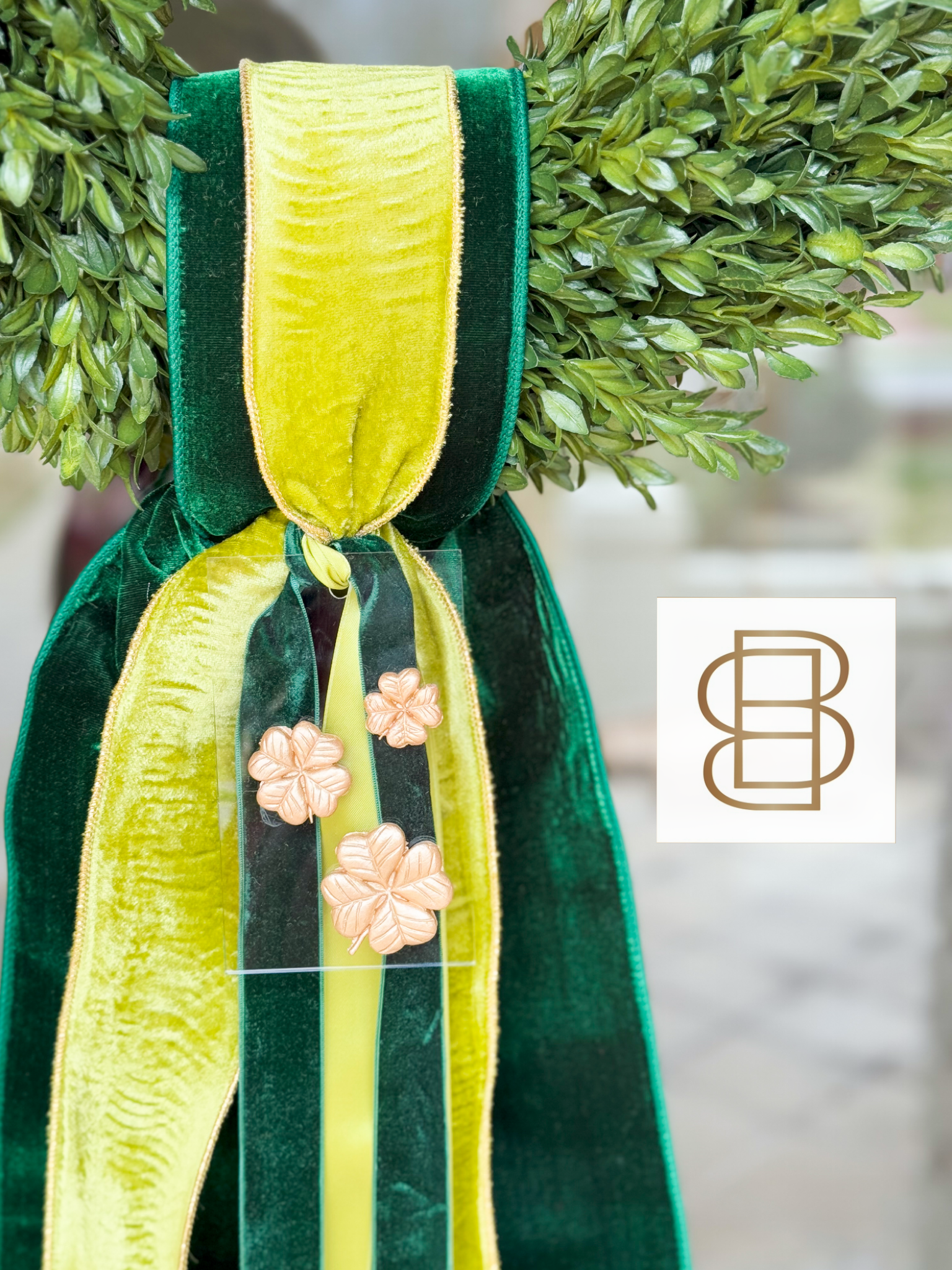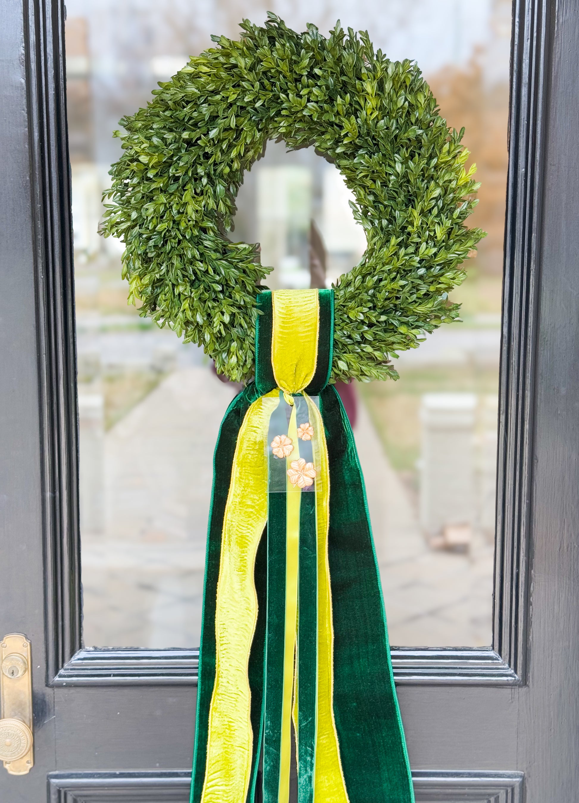 Pinch Proof Tea Leaf Wreath And Layered Ribbon Sash With Hand Poured Ornament