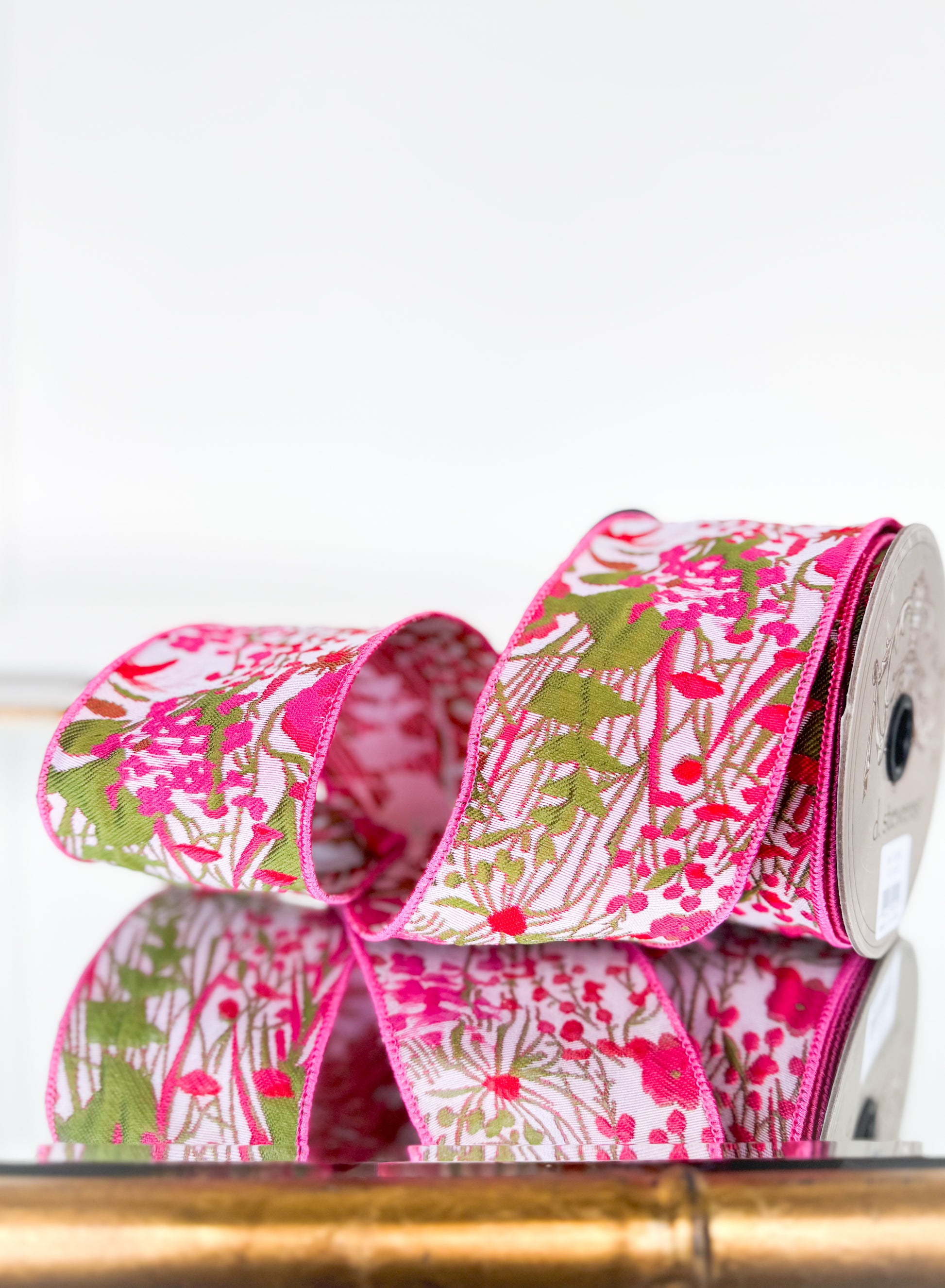 3” x 10 yds Pink Floral Bouquet Designer Ribbon, Wired