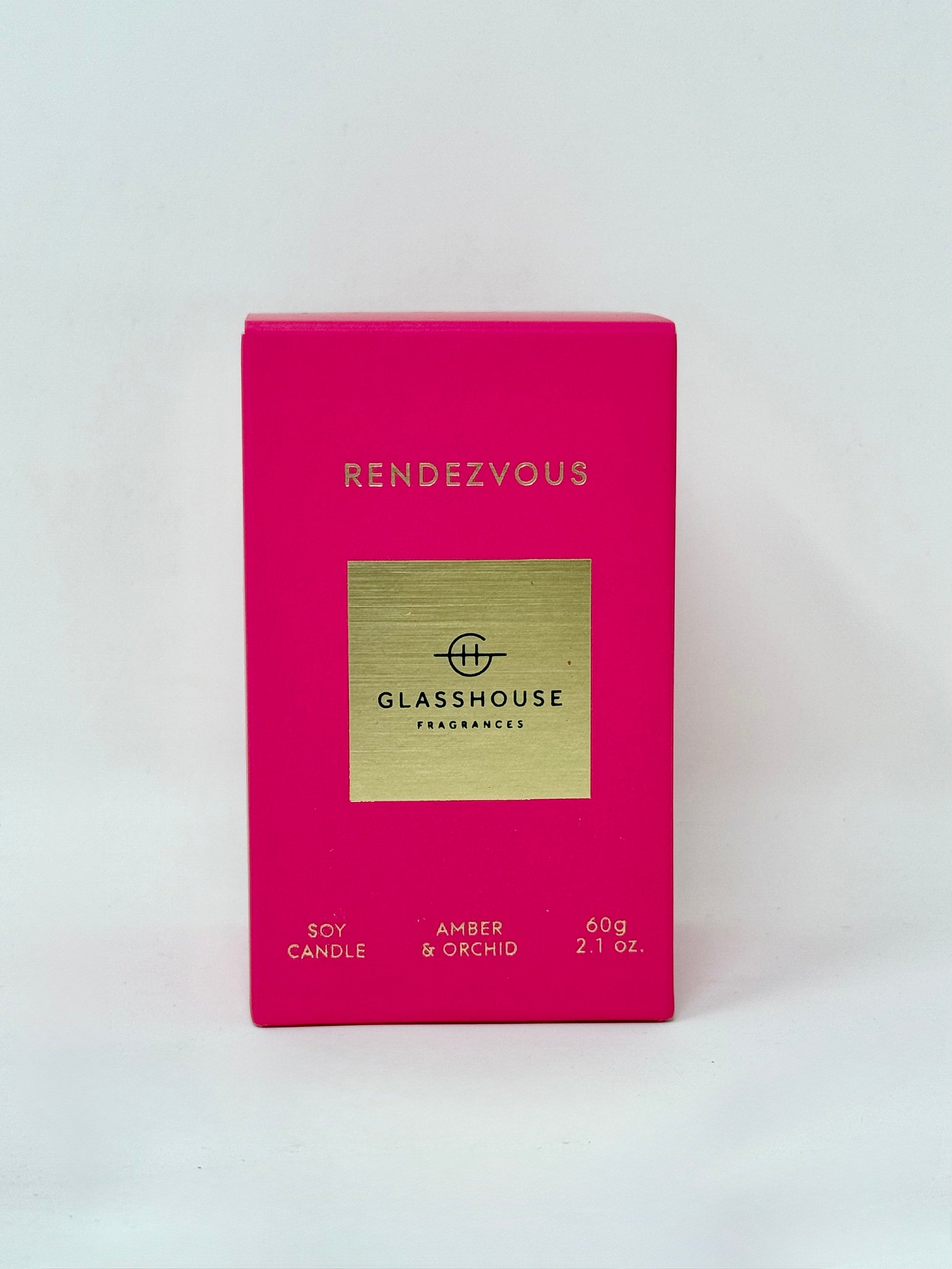 Glasshouse Rendezvous Mini Candle: It starts off flirty with white florals and sugar cane, maturing into something softer. A transcendent everyday luxury, it creates instant ambience.