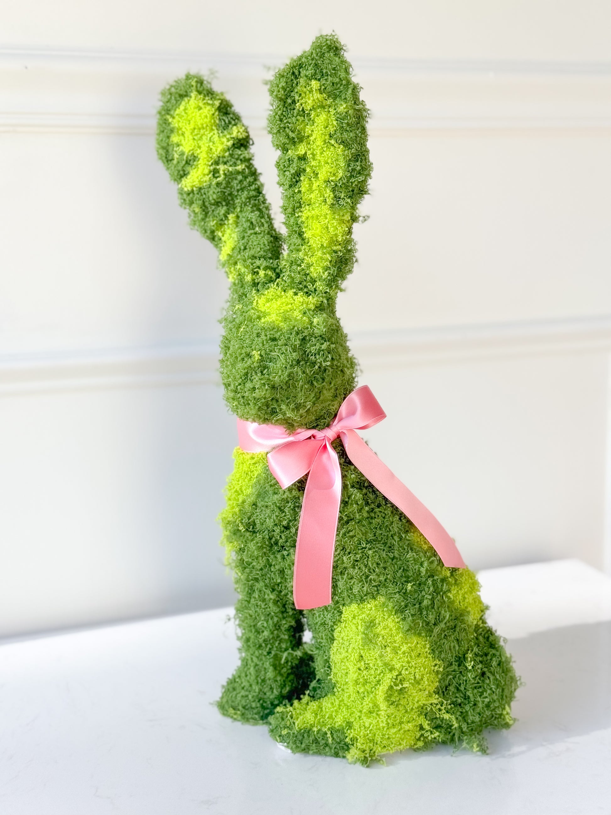 L7.9"W9.1H17.8" Two Tone Moss Bunny With Pink Satin Bow