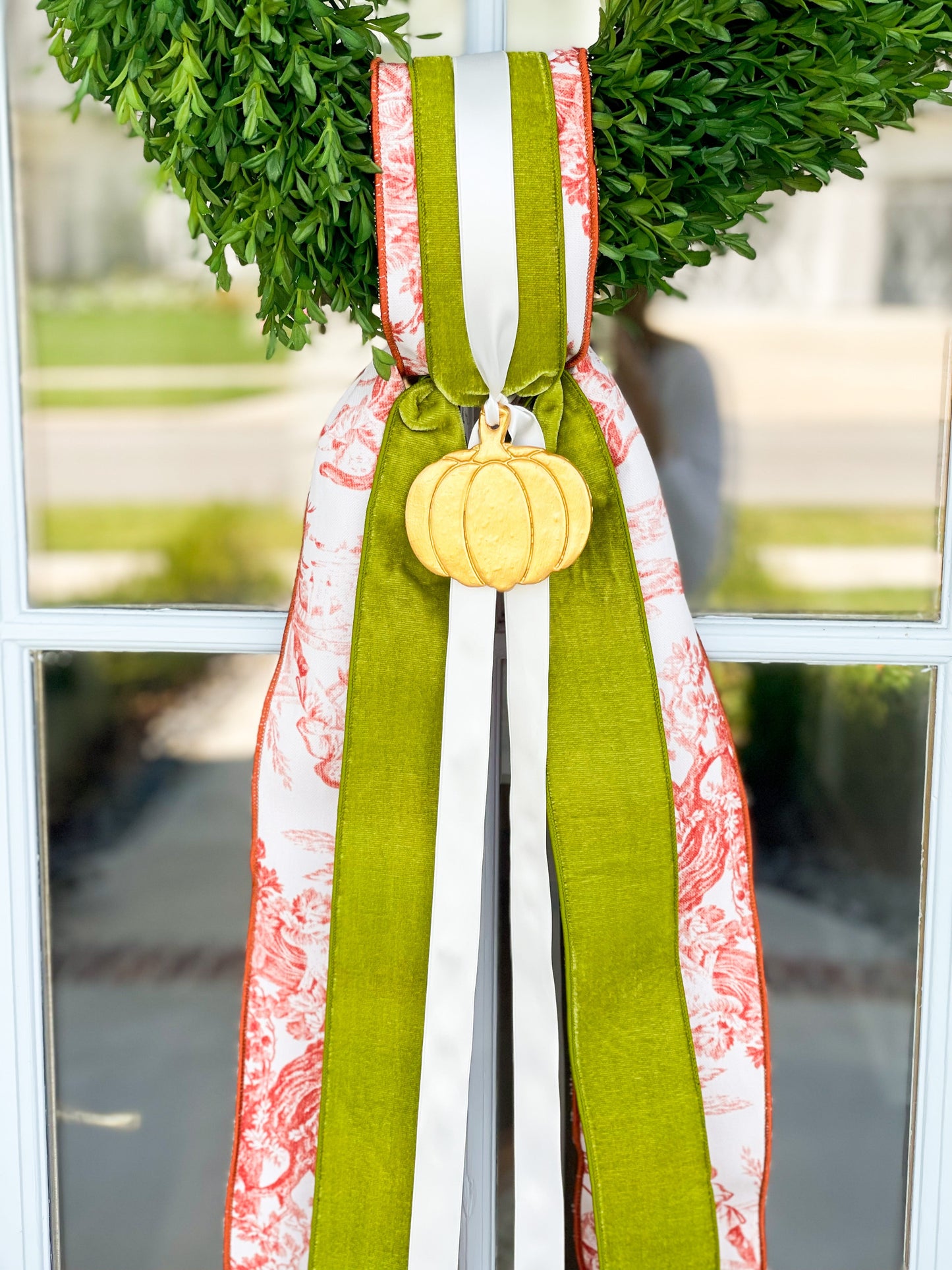 Pumpkin Patch Layered Ribbon Sash With Handmade Pumpkin Ornament ONLY