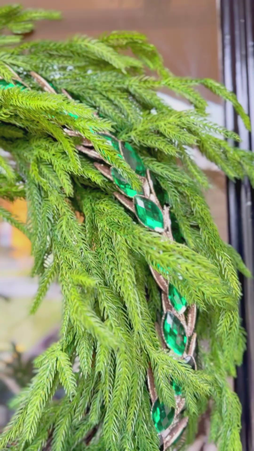 24” Real Touch Fir Pine Wreath With Rhinestone Wreath And Layered Bow With Handcrafted Crown Ornament