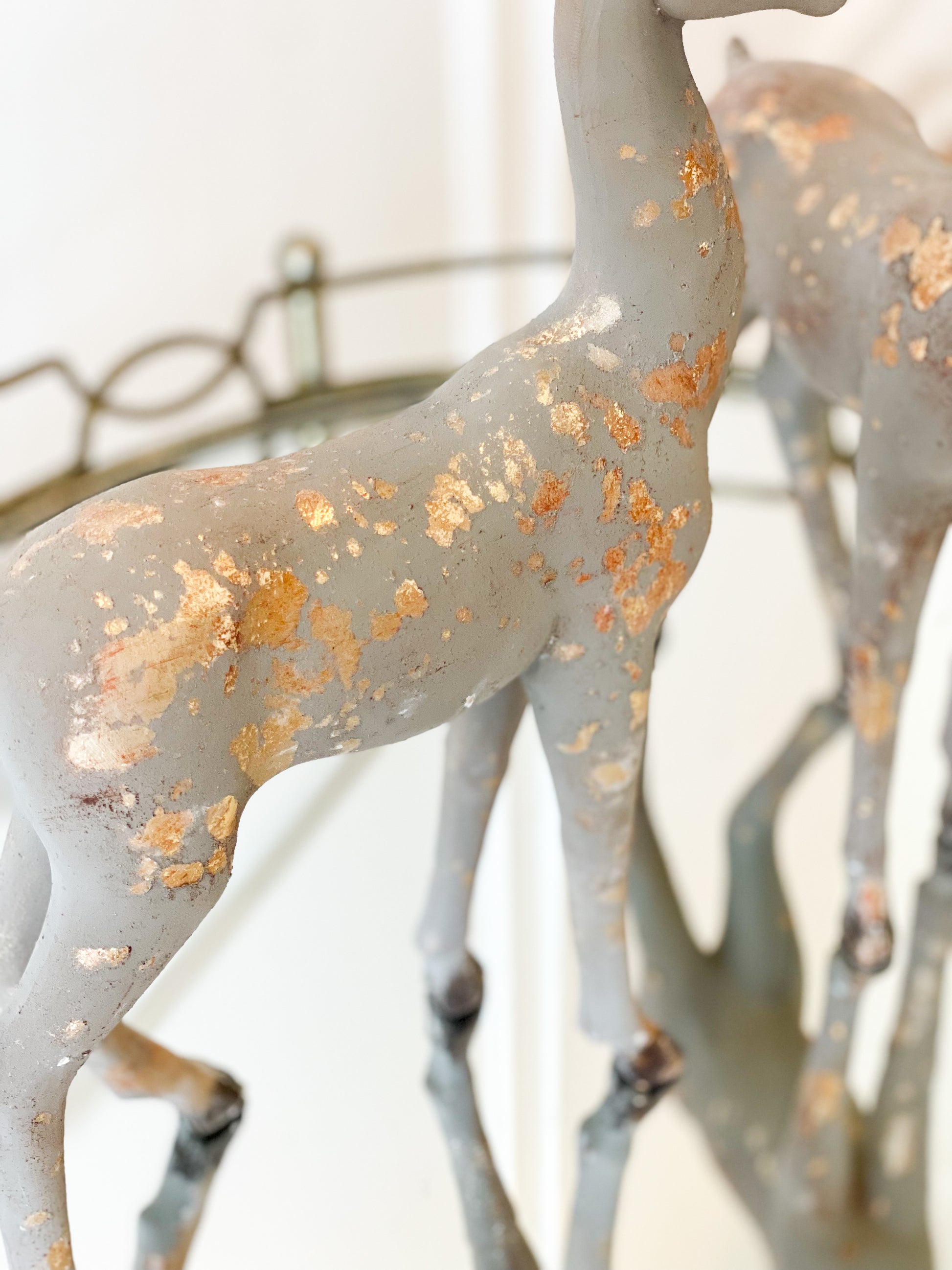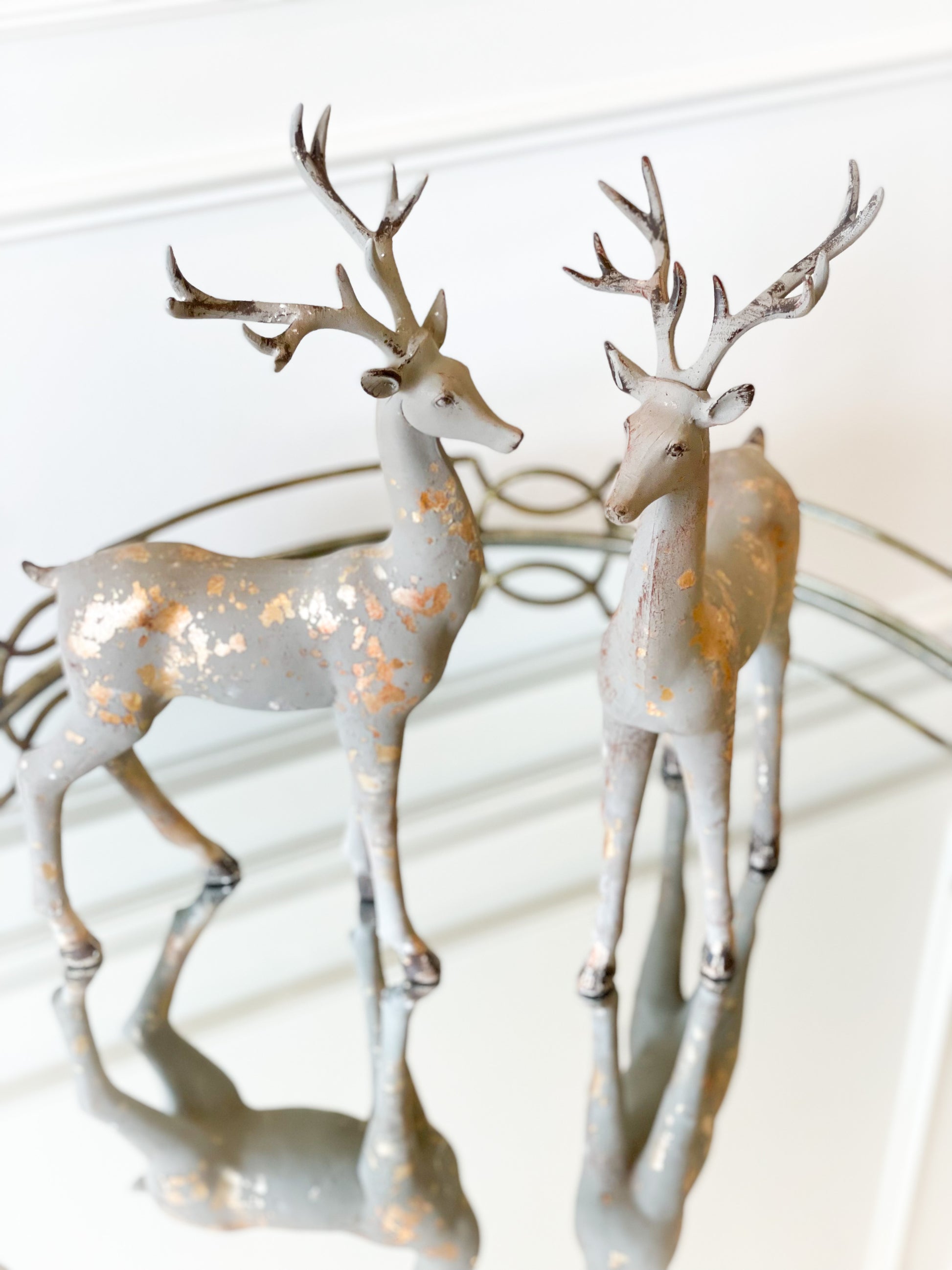 Set Of Two 17” Resin Reindeer With Gold Accents