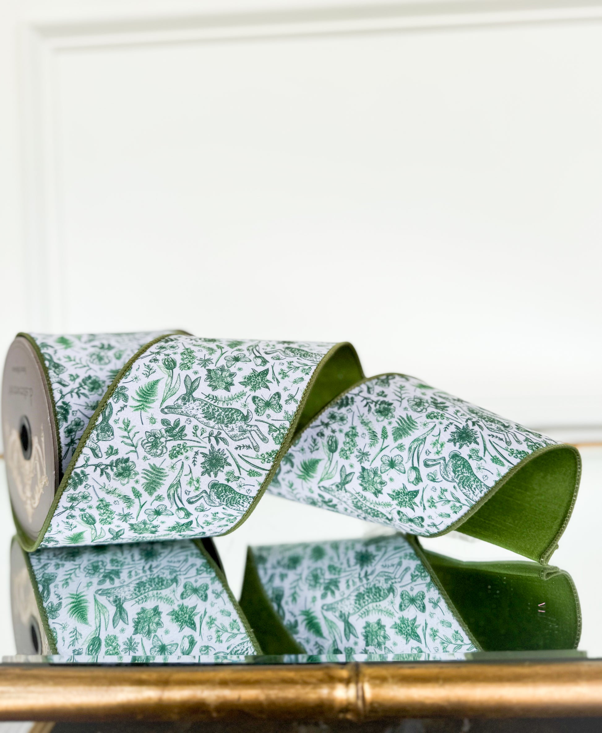 4” x 10 yds Green Bunny Toile Designer Ribbon, Wired