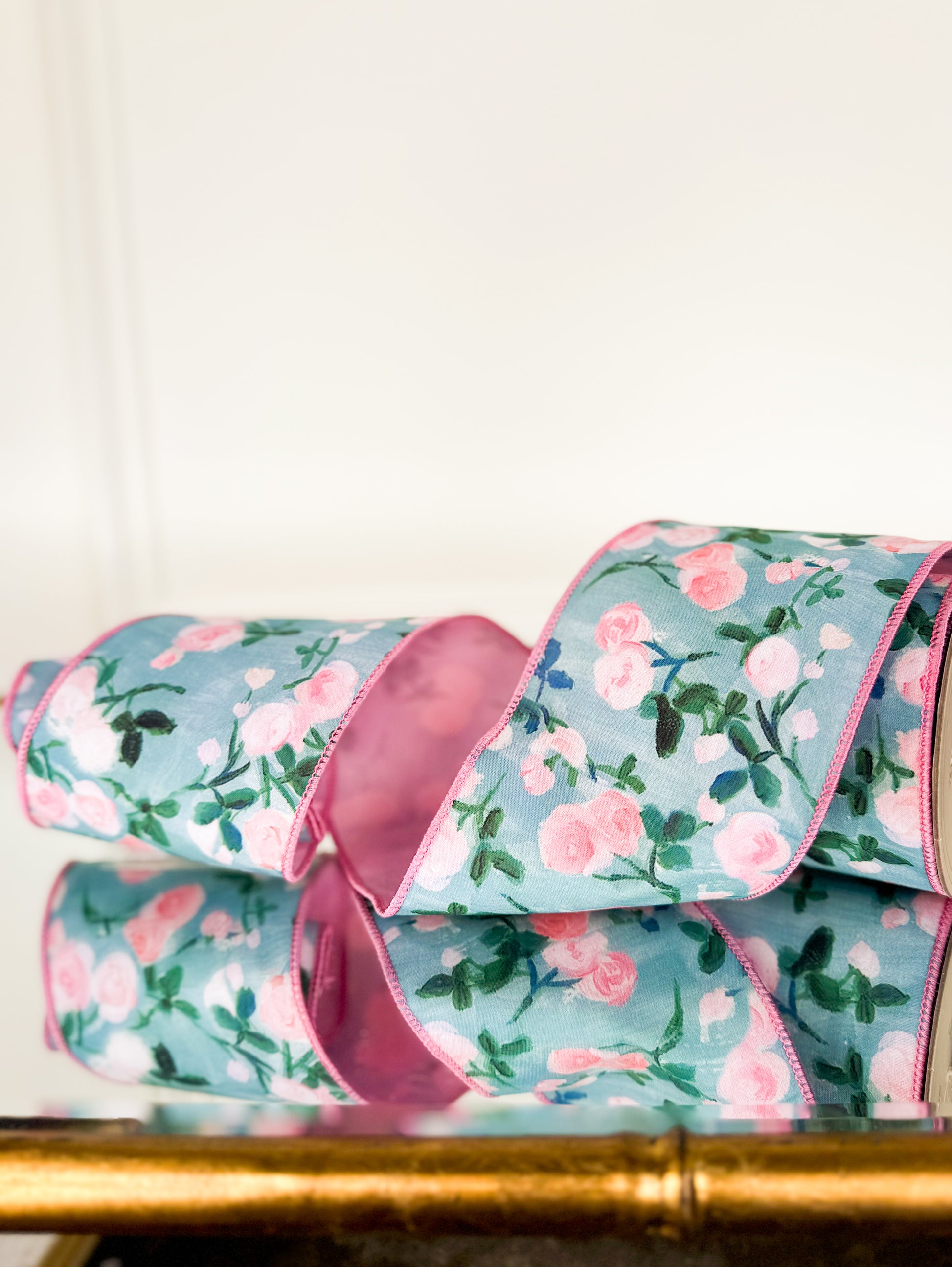 4” x 10 yds Climbing Rose Designer Ribbon, Wired