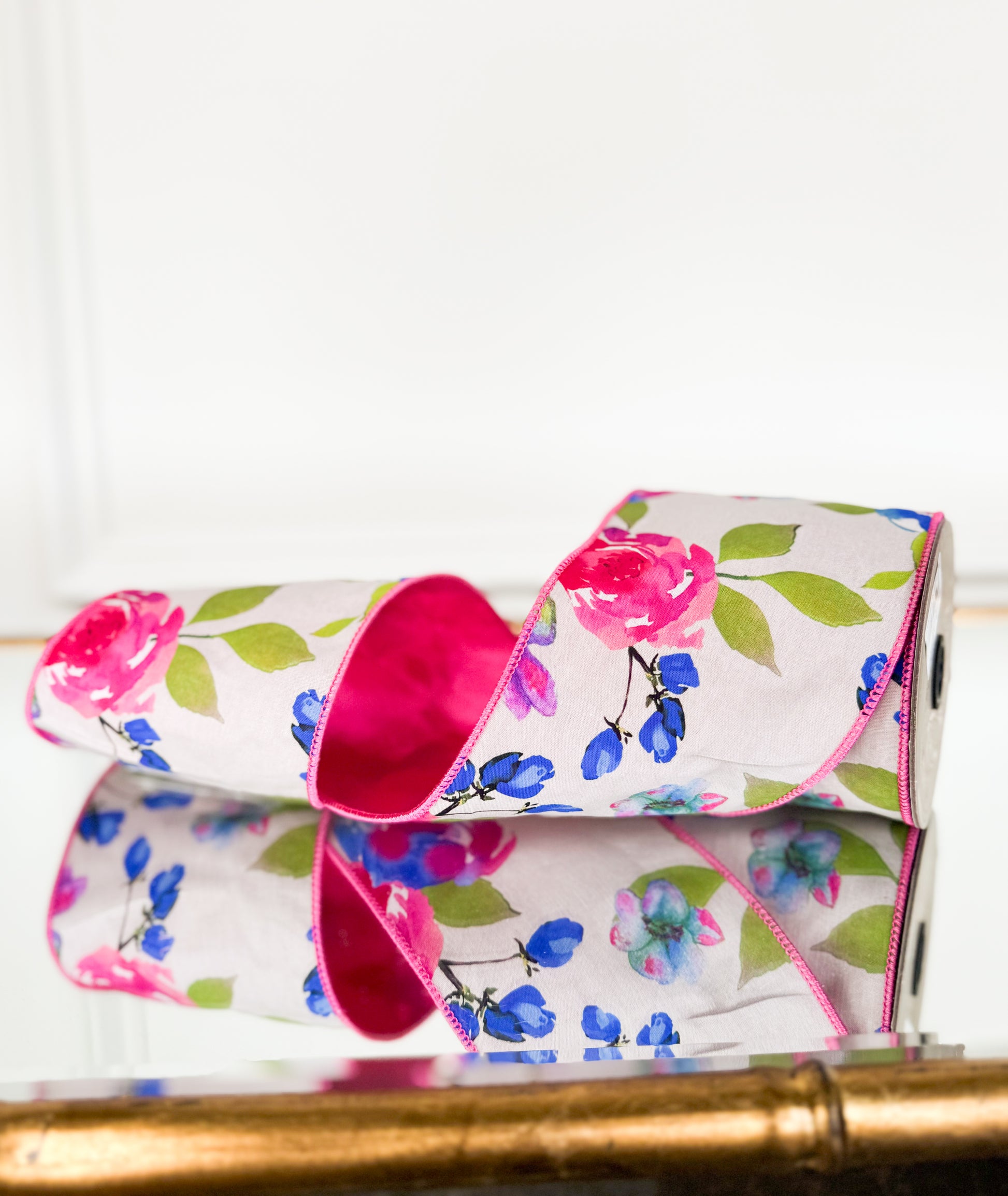 4” x 10 yds Spring Bouquet Designer Ribbon, Wired