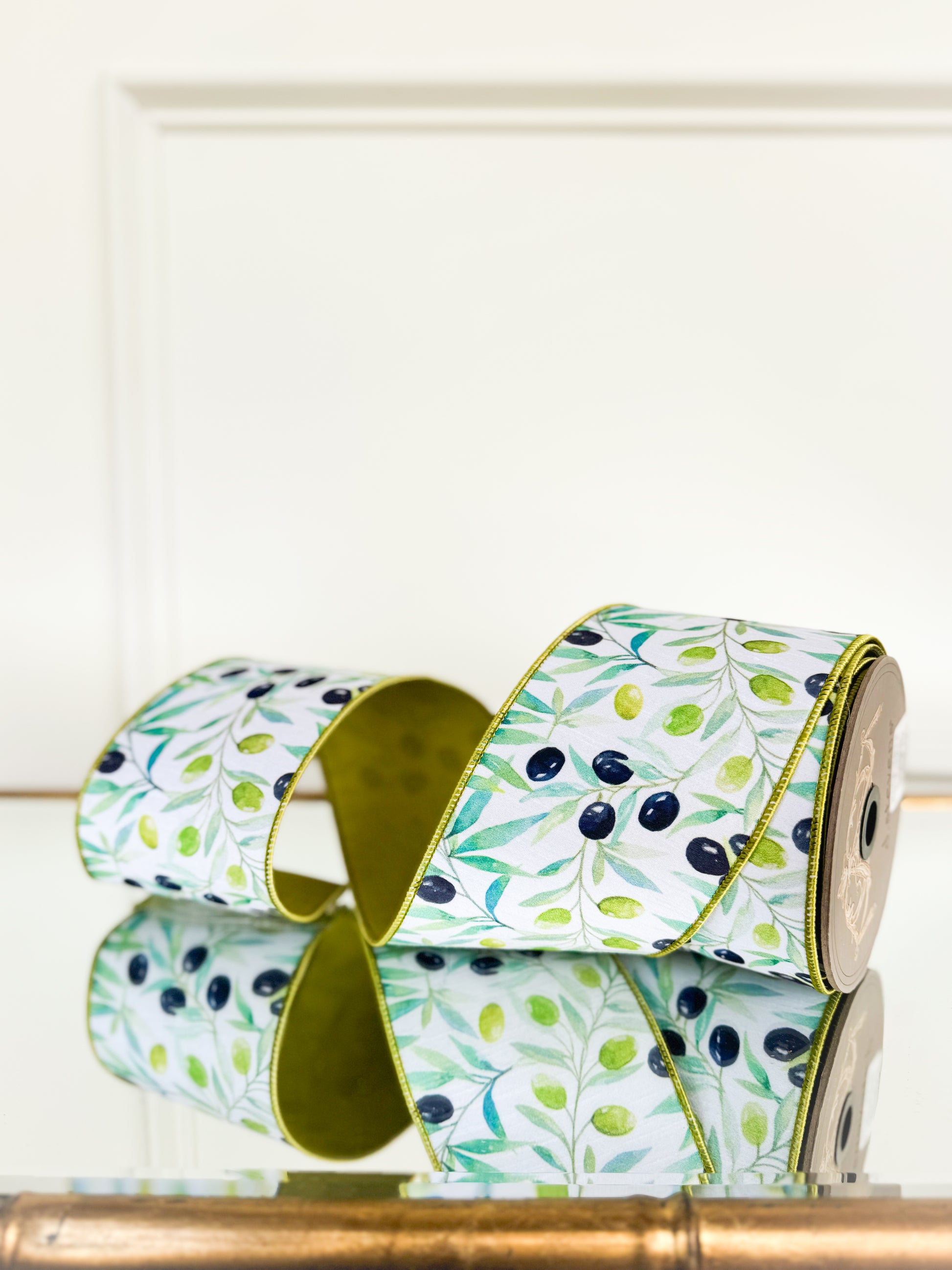 4” x 10 yds Olive Leaf Designer Ribbon, Wired