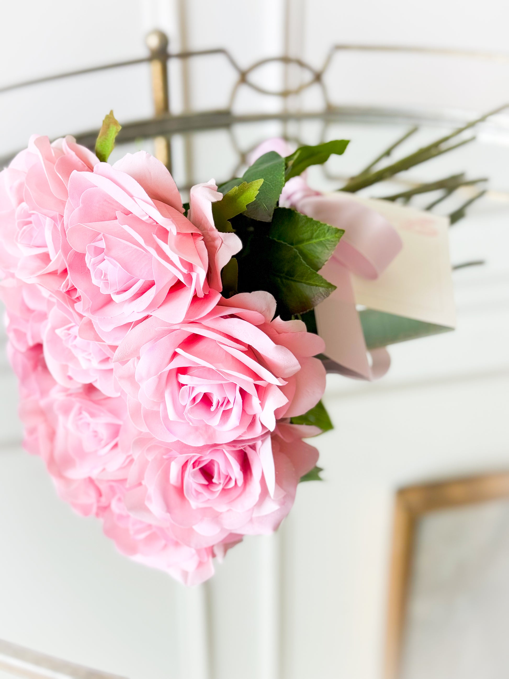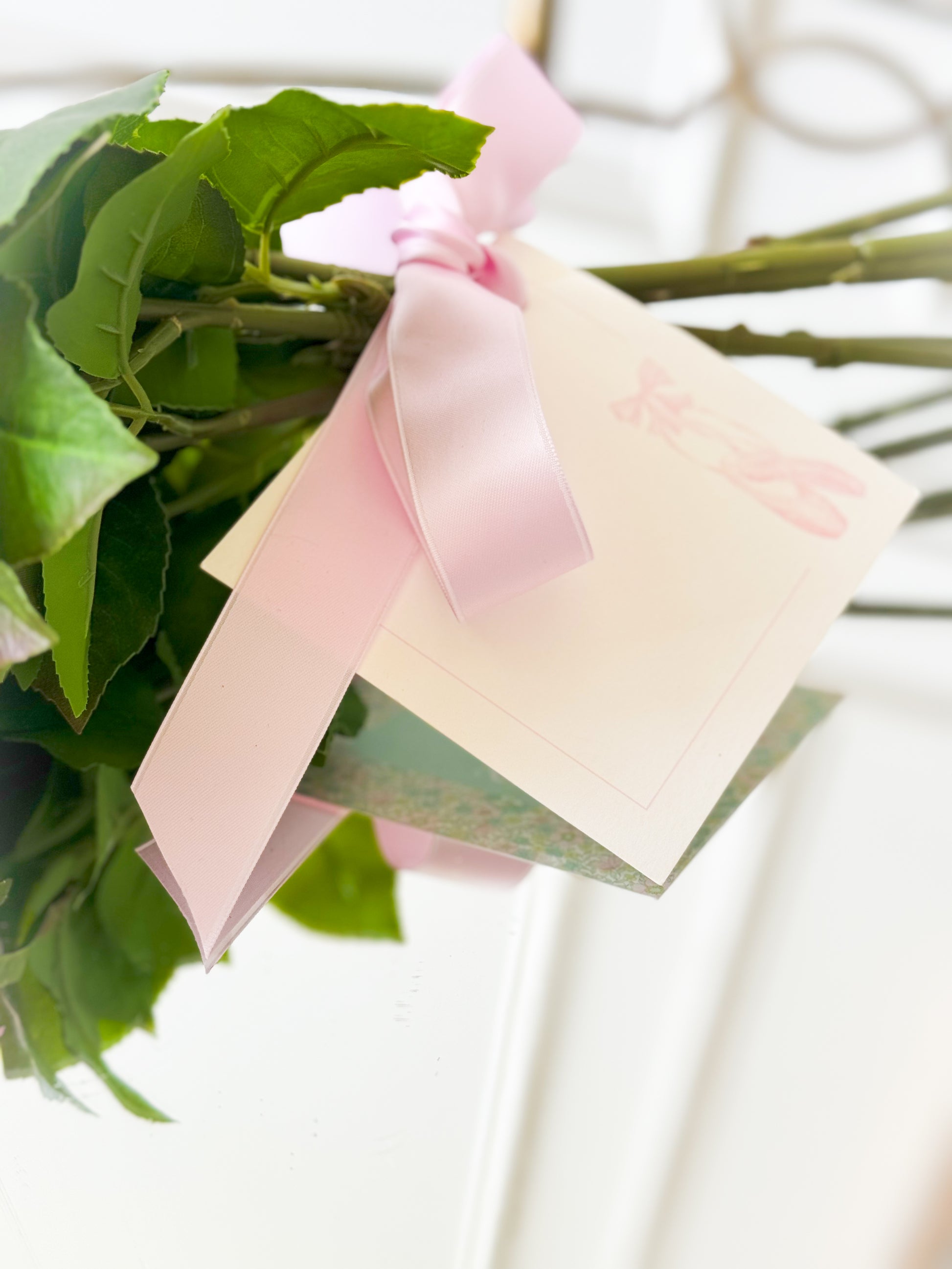 Real Touch Light Pink Rose Bouquet With Satin Ribbon And Card, Dance Recital