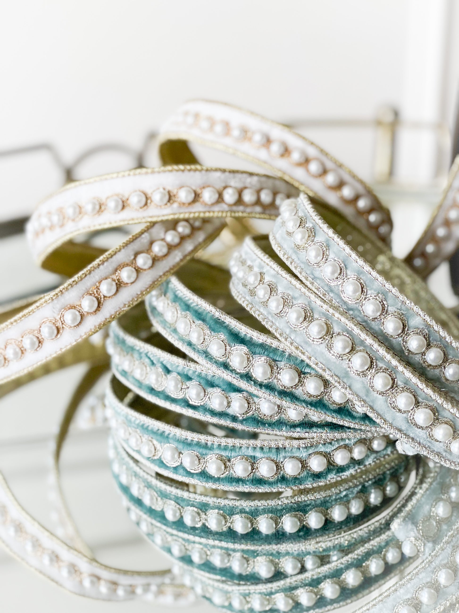 Seafoam Pearl Velvet Ribbon 1”x 5 yd