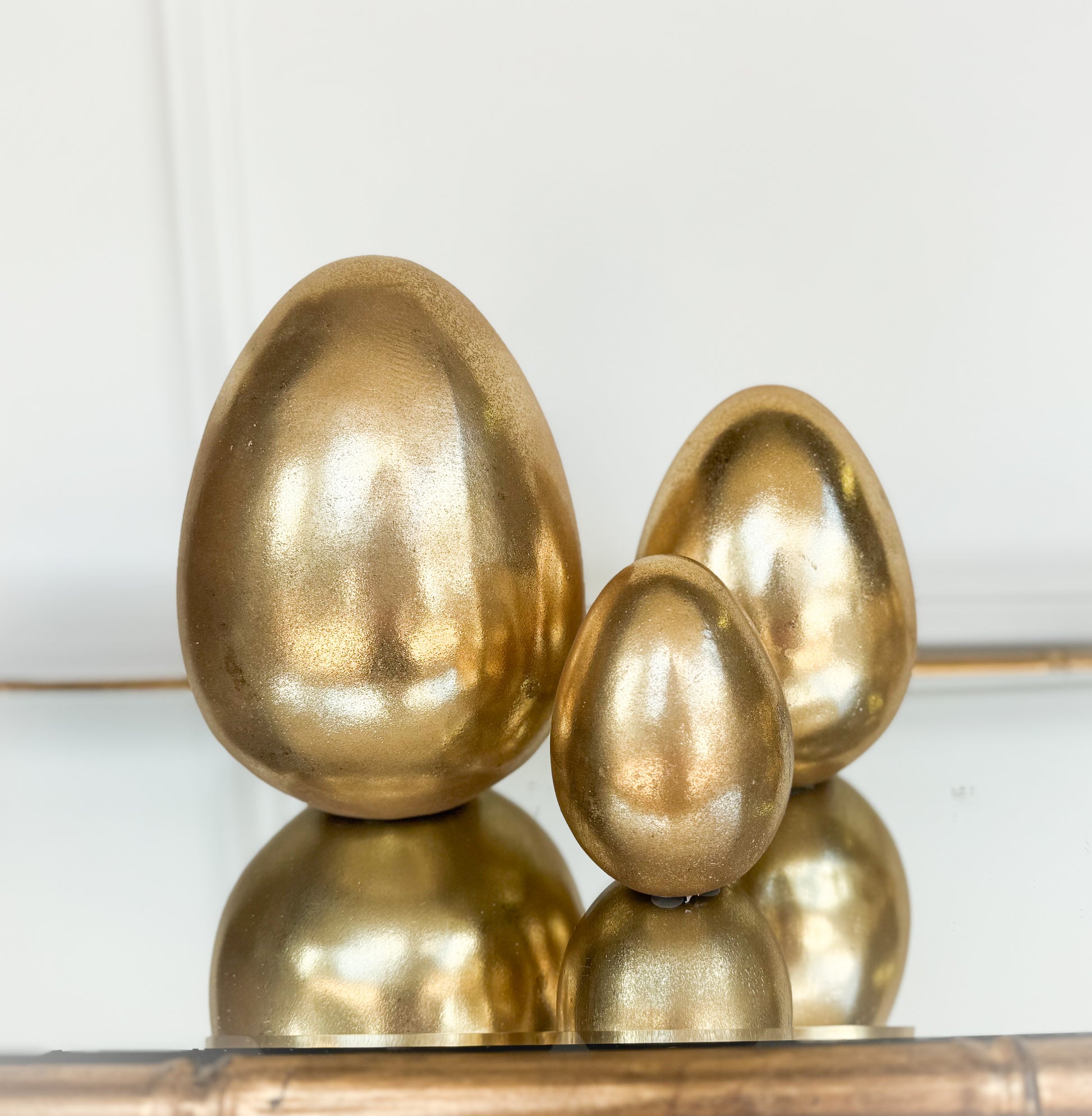 Set Of 3 Resin Golden Eggs 8”, 6”, 4”
