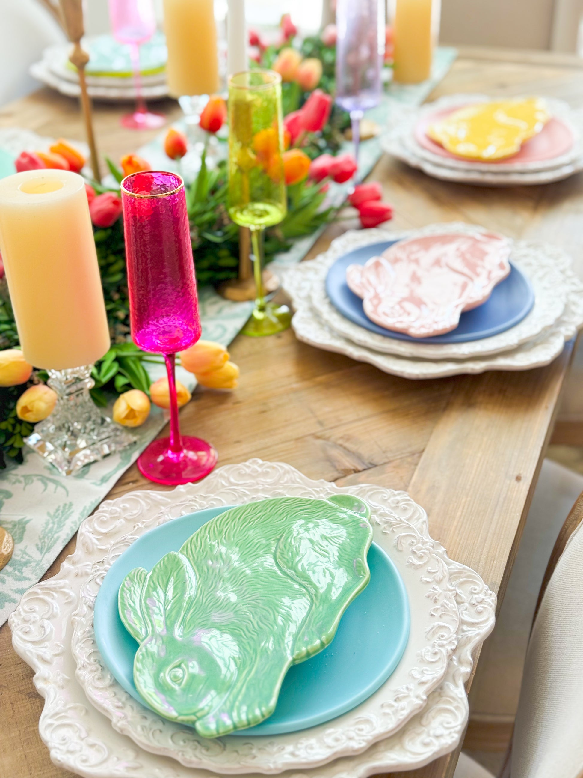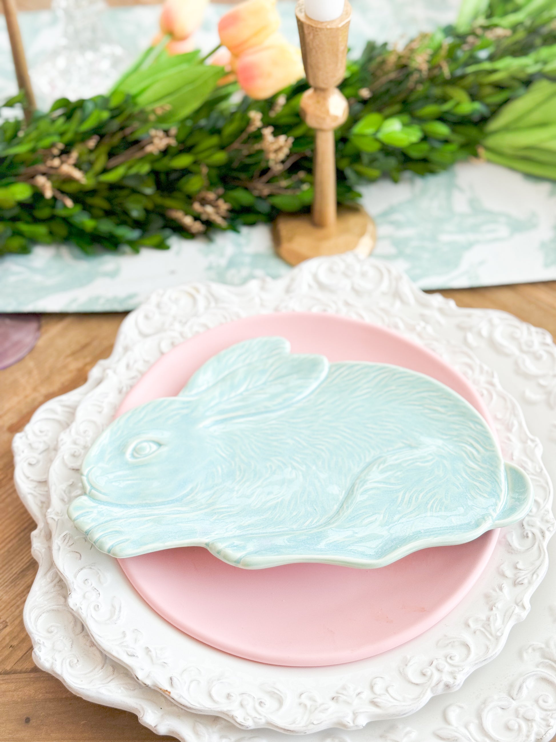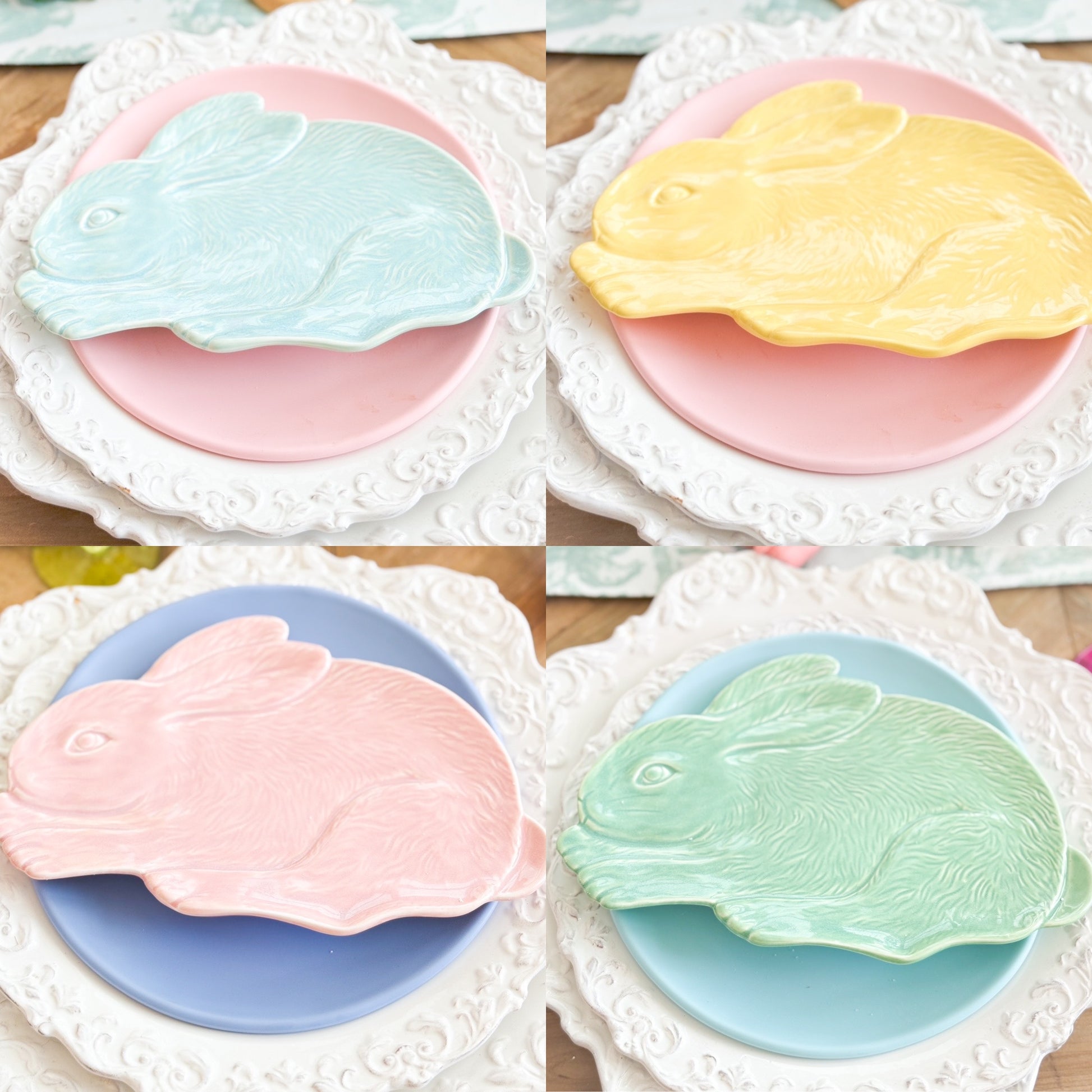 Set Of Four 10” Assorted Ceramic Bunny Plates