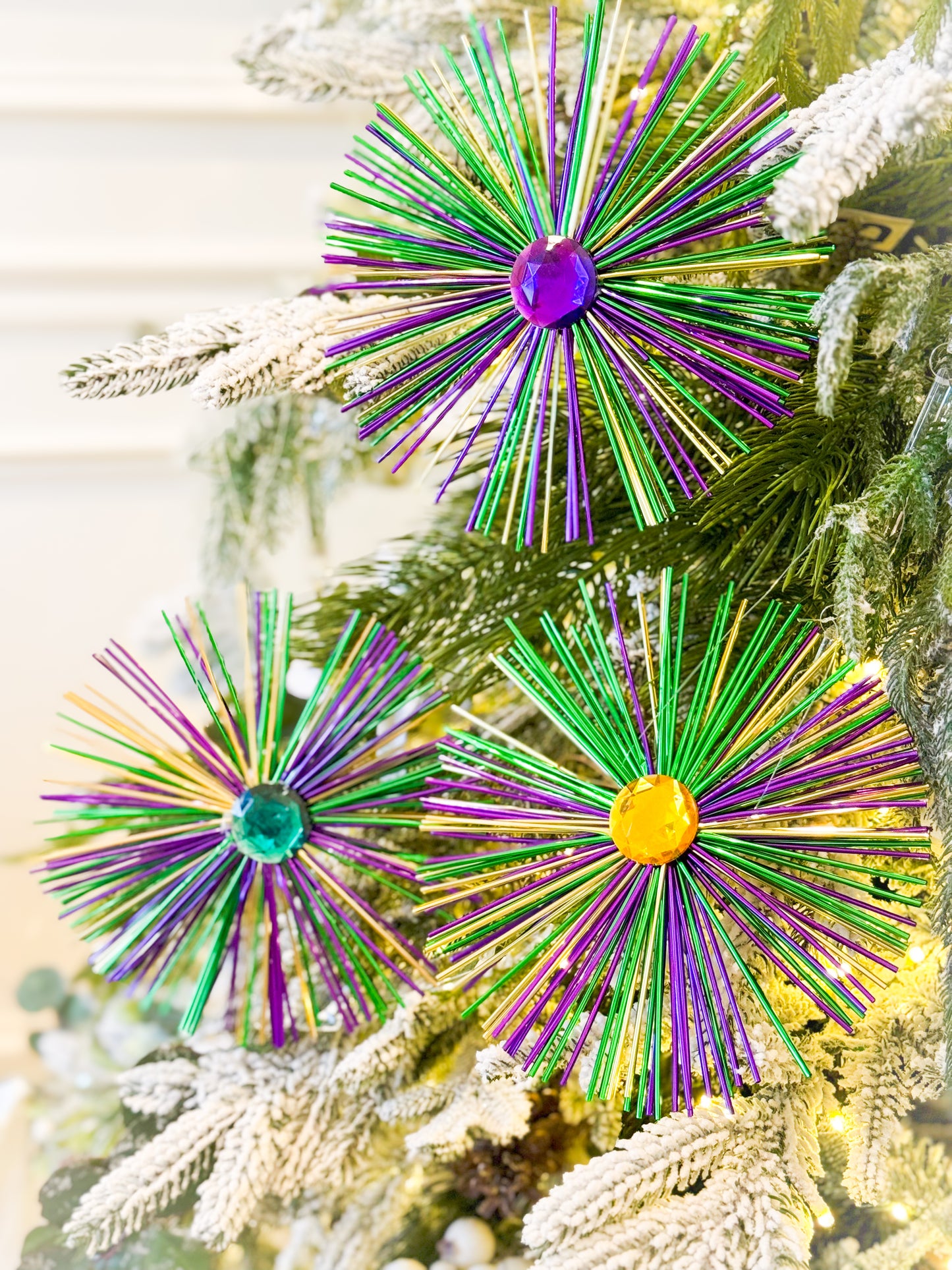 8” Set Of Three Mardi Gras Starburst Ornaments