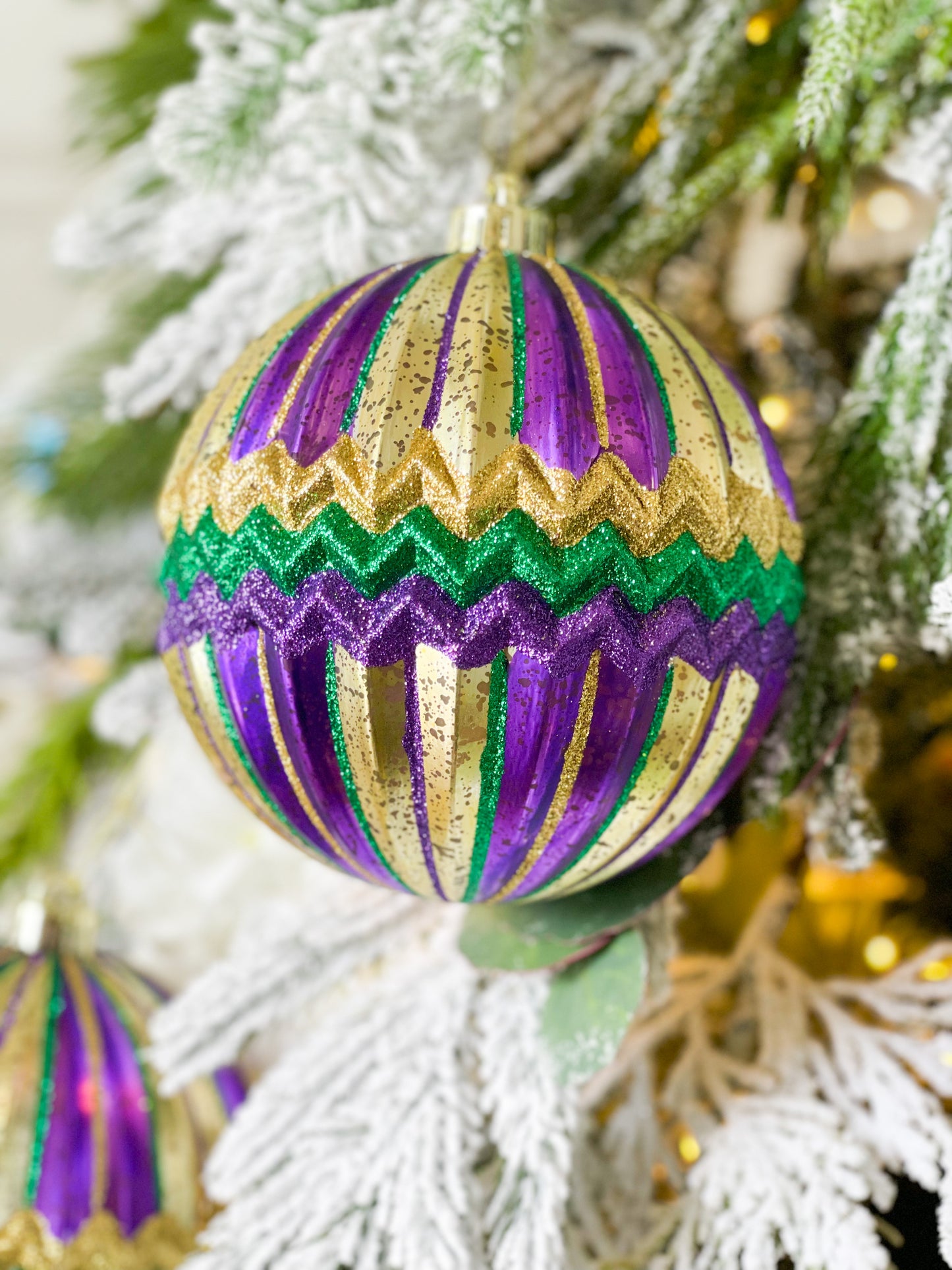 Set Of Two Mardi Gras Gold Stripe/Chevron Ornaments