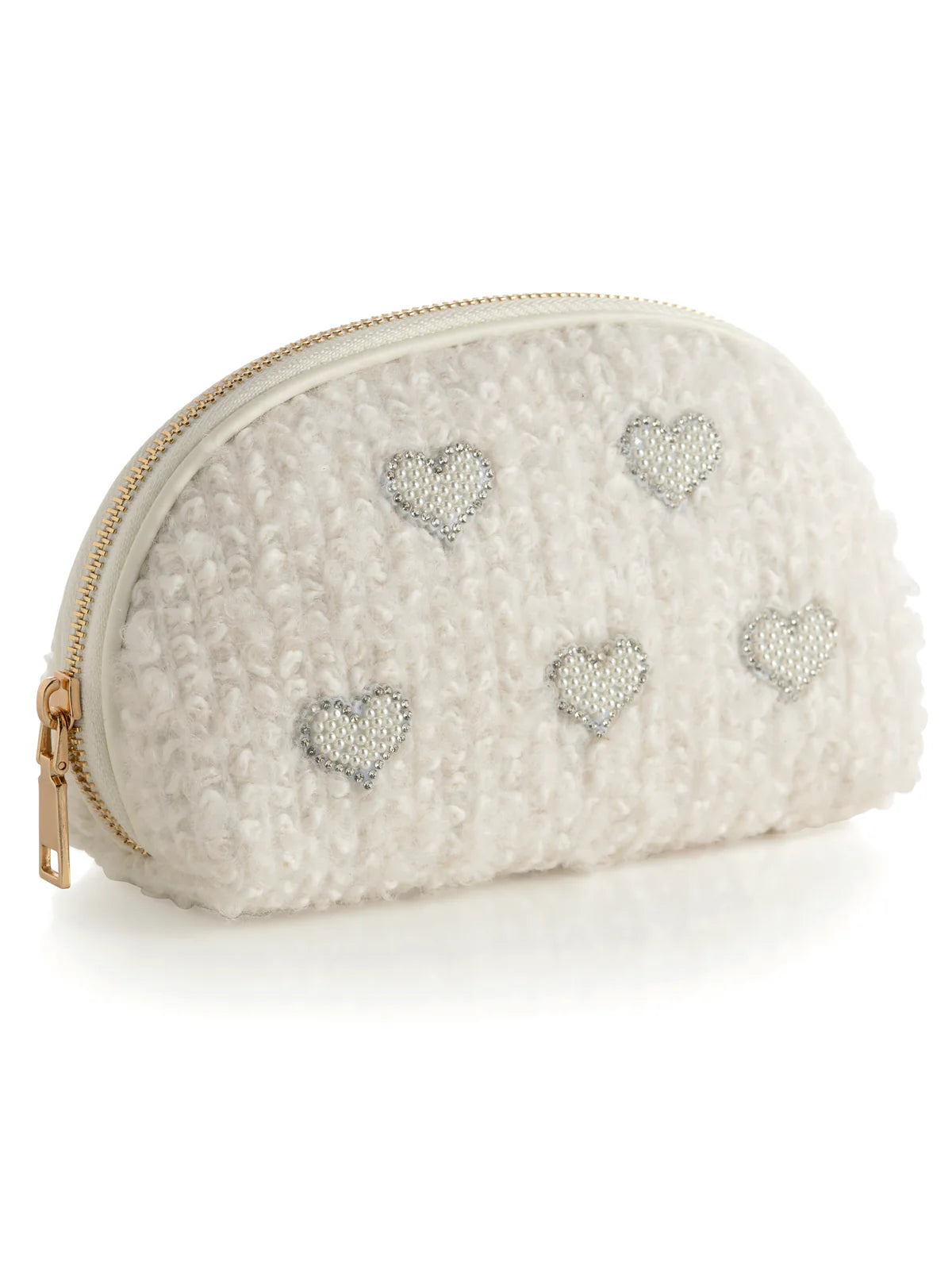 Shiraleah Hearts Boucle Zip Pouch, Ivory