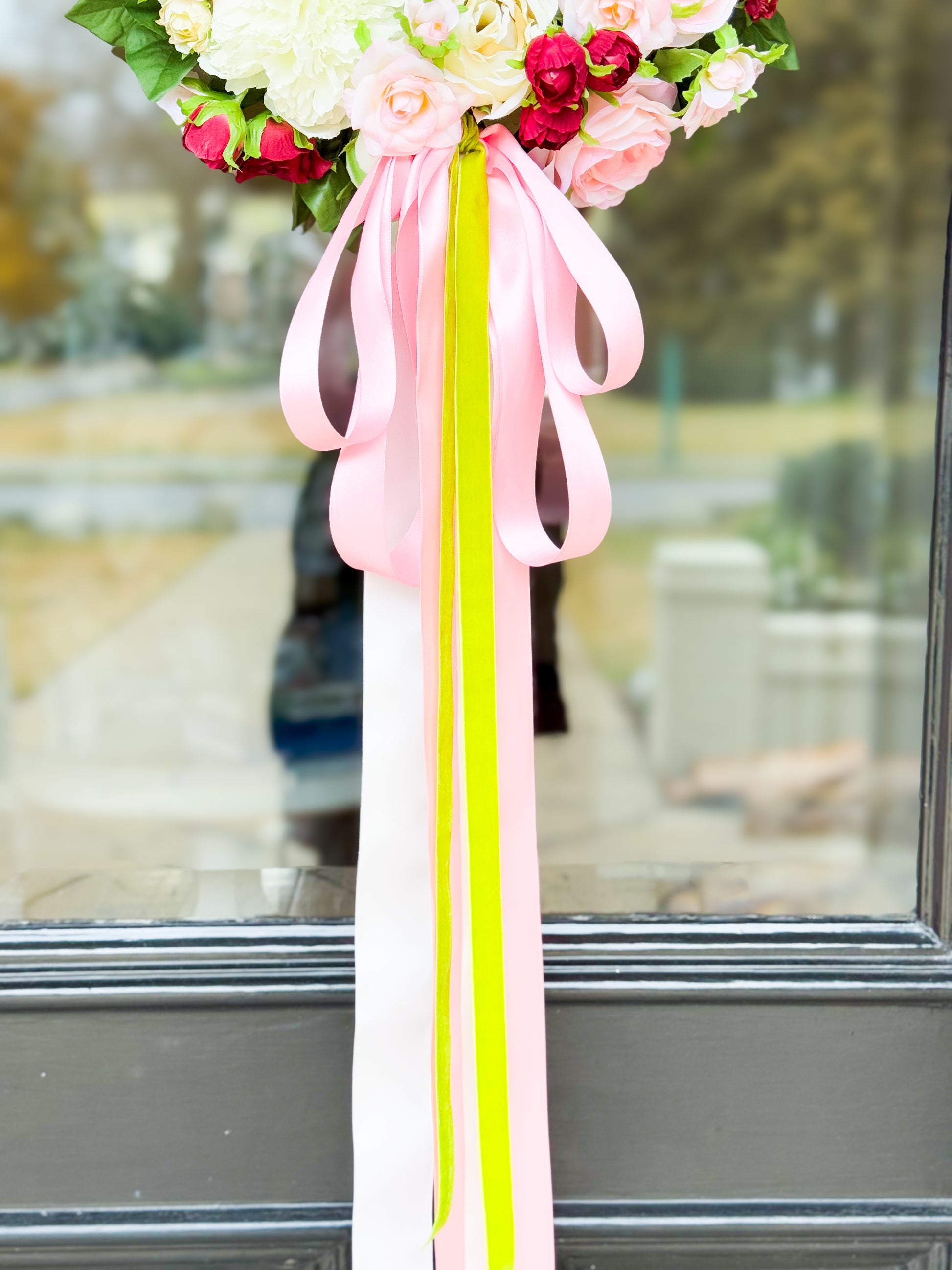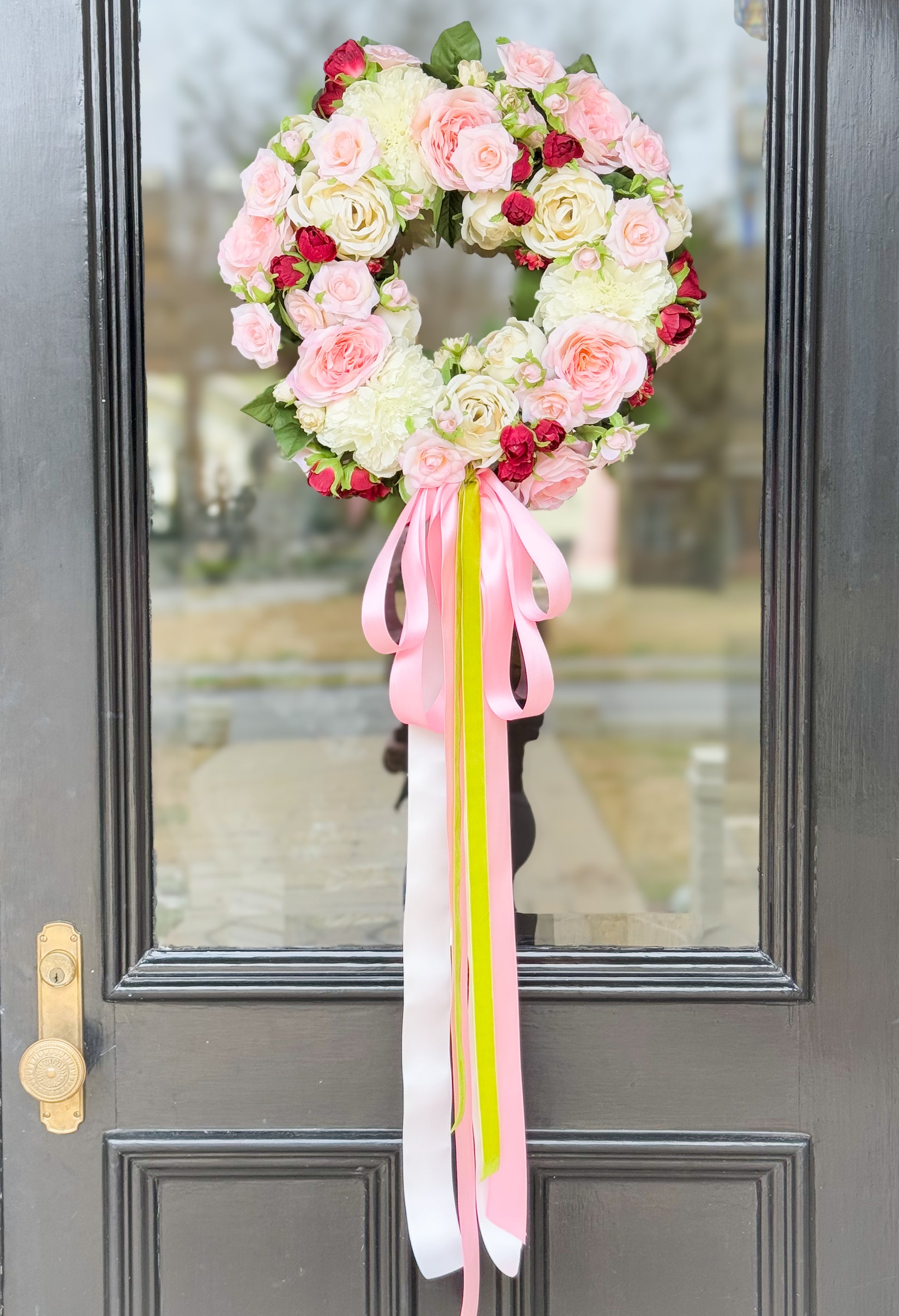 The Bloom 17” Cream And Blush Rose And Peony Wreath And Layered Bow