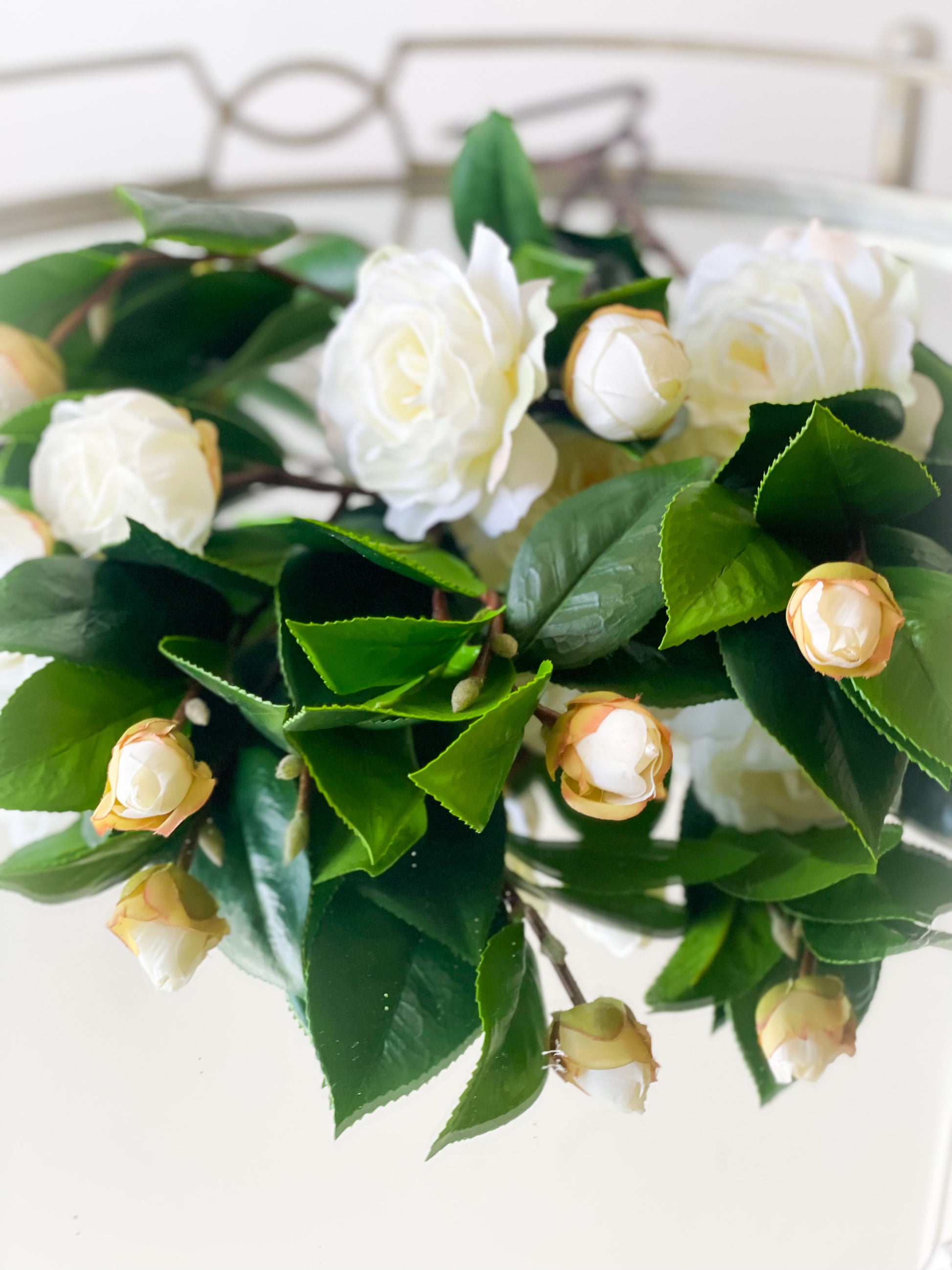 (3) 28” Cream Camellia Two Flowers, Two Buds Stem