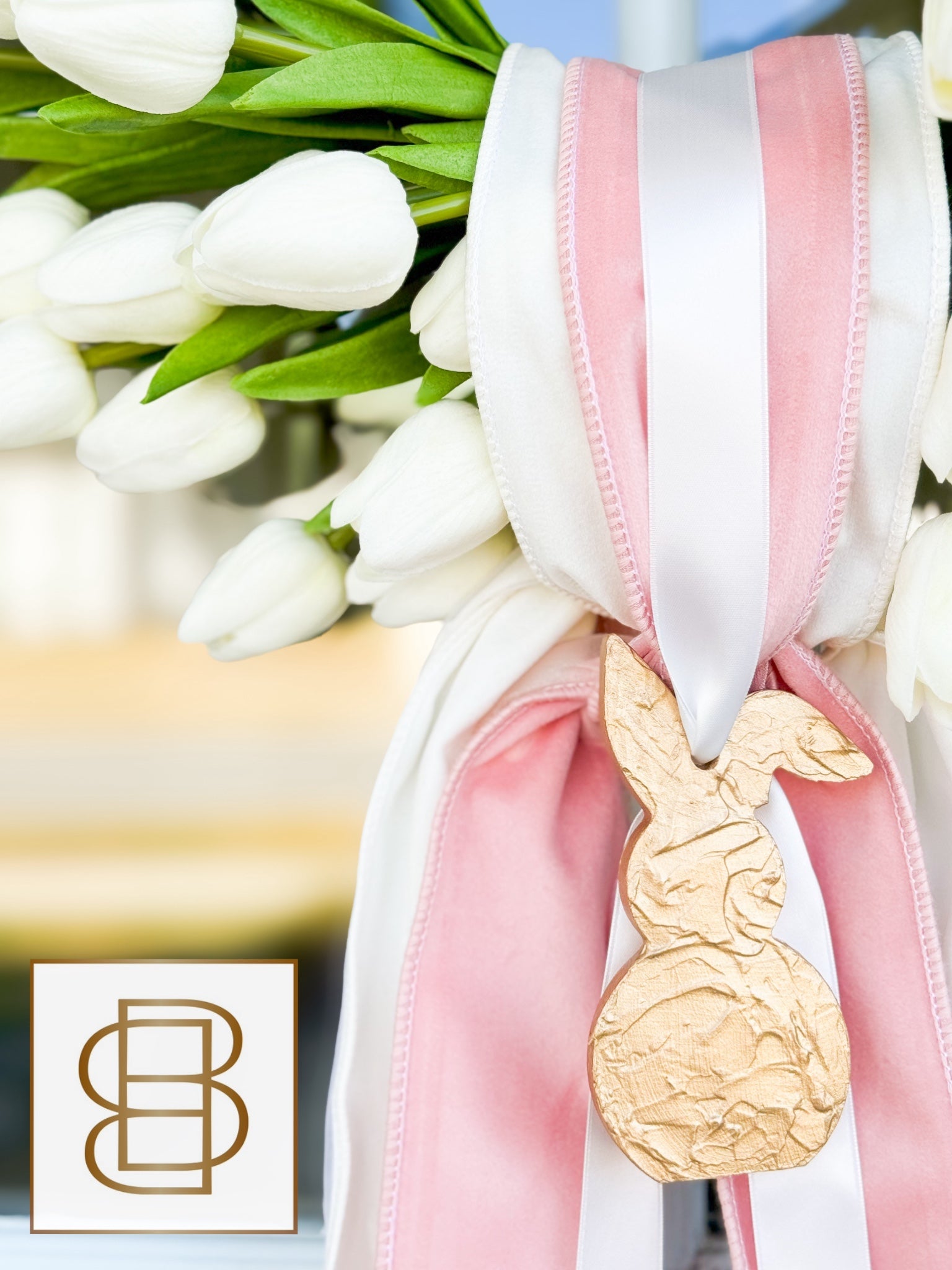 The Cottontail Layered Ribbon Sash With Hand Crafted Gold Bunny Ornament