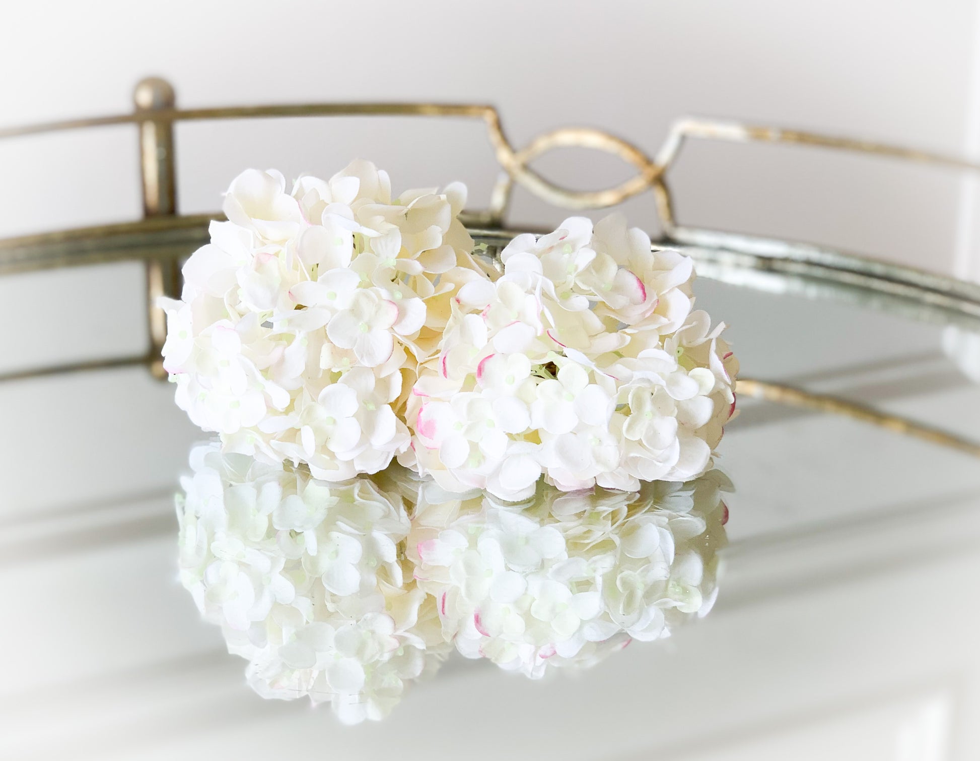 The Elizabeth Bouquet Blanc Box includes two white hydrangeas, two light coral three bud peonies, two English rose multi-bud stems, three fuchsia long stem roses. All florals are real touch. *vase not included*