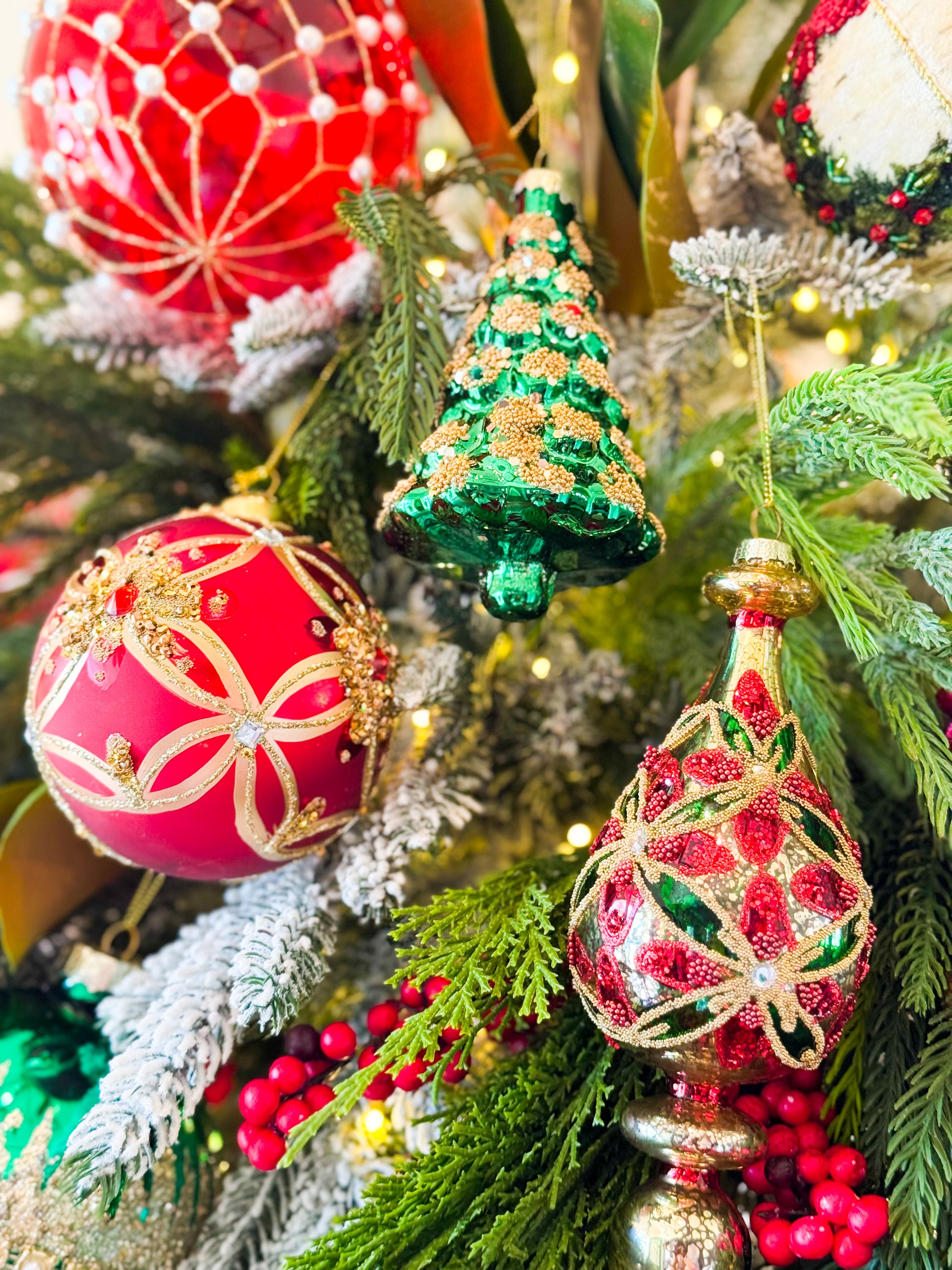 12 - 3.5” Botanical with Jewel Ball Ornaments (Assorted)