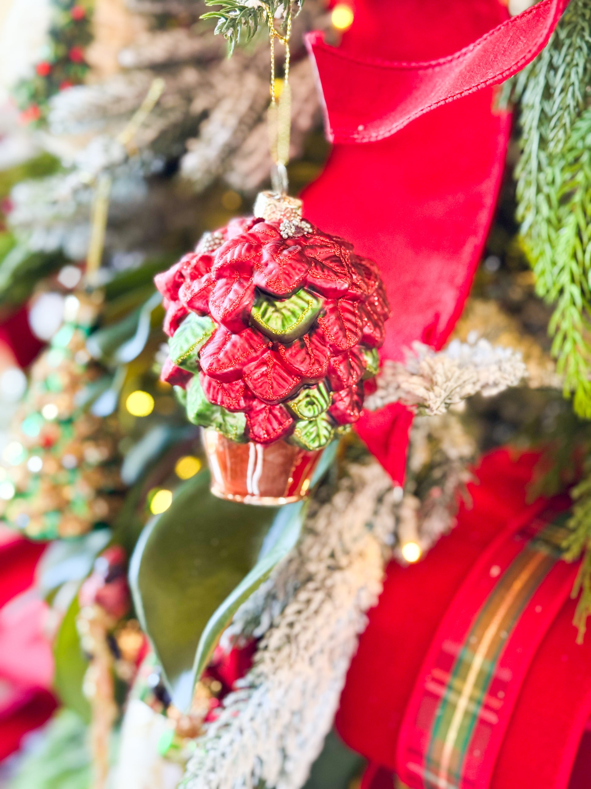 3 - 4.5” Glass Potted Poinsettia Ornament