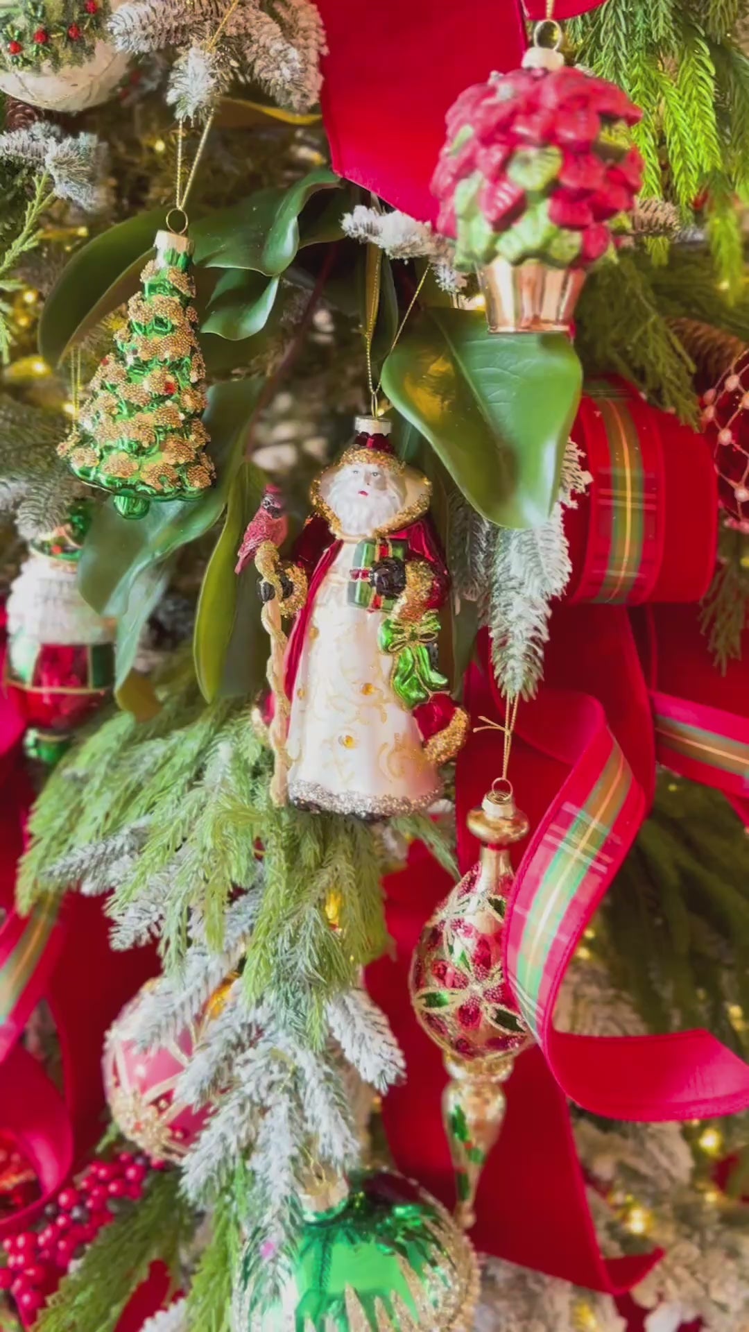 9 - 4.75” Red Glass Ornament with Gold Diamond Glitter