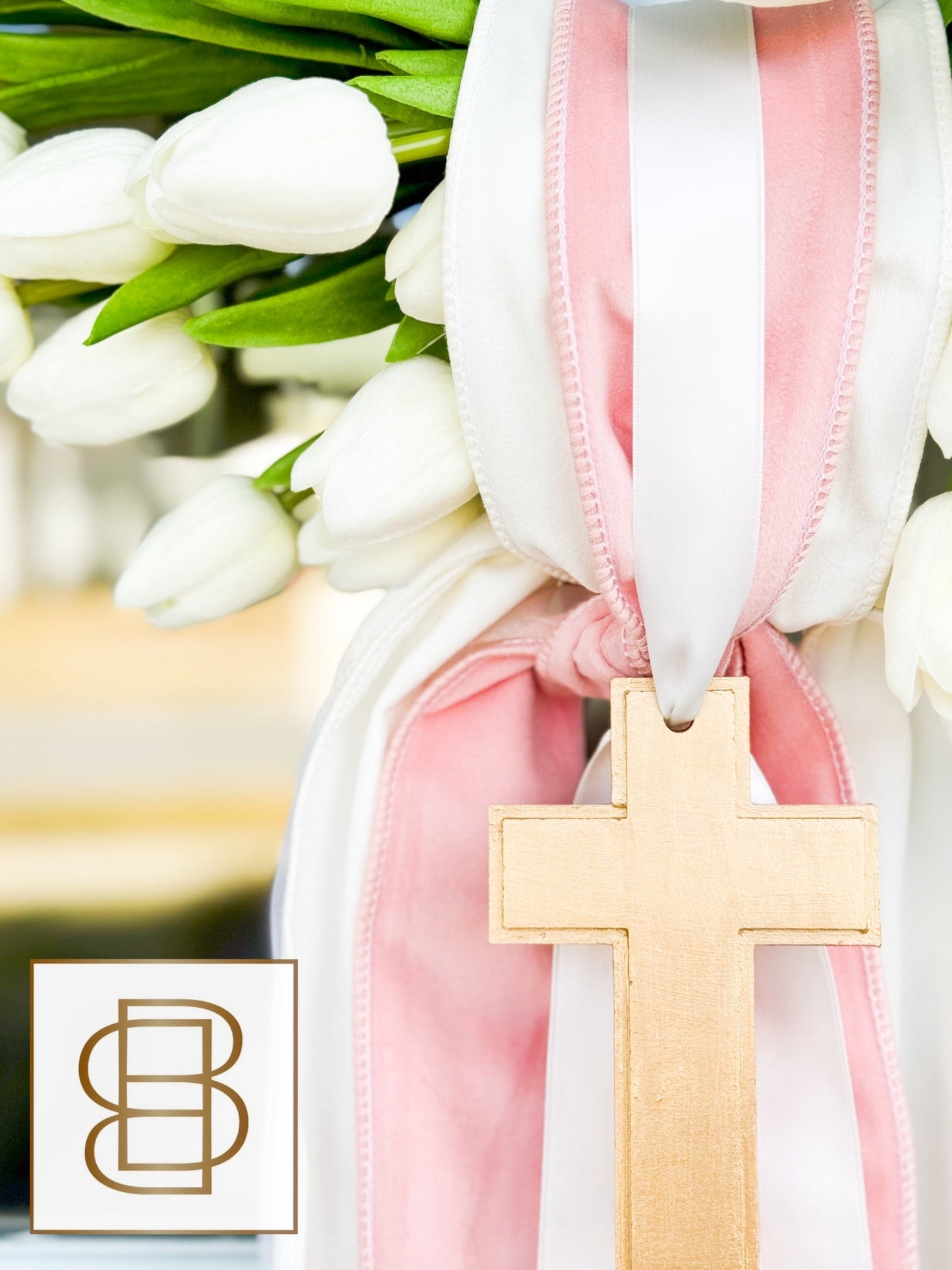 The Grace Layered Ribbon Sash With Hand Crafted Gold Cross Ornament