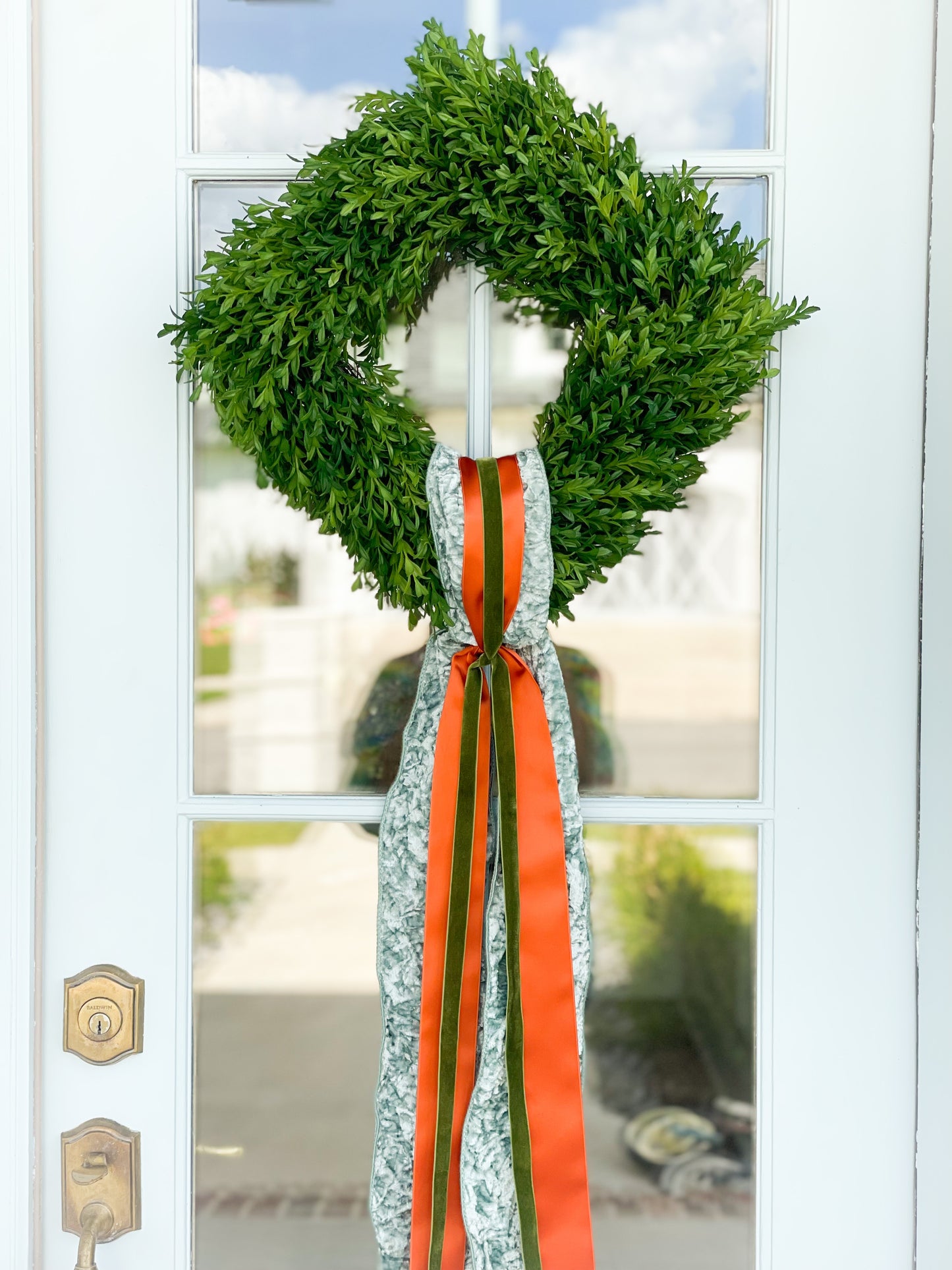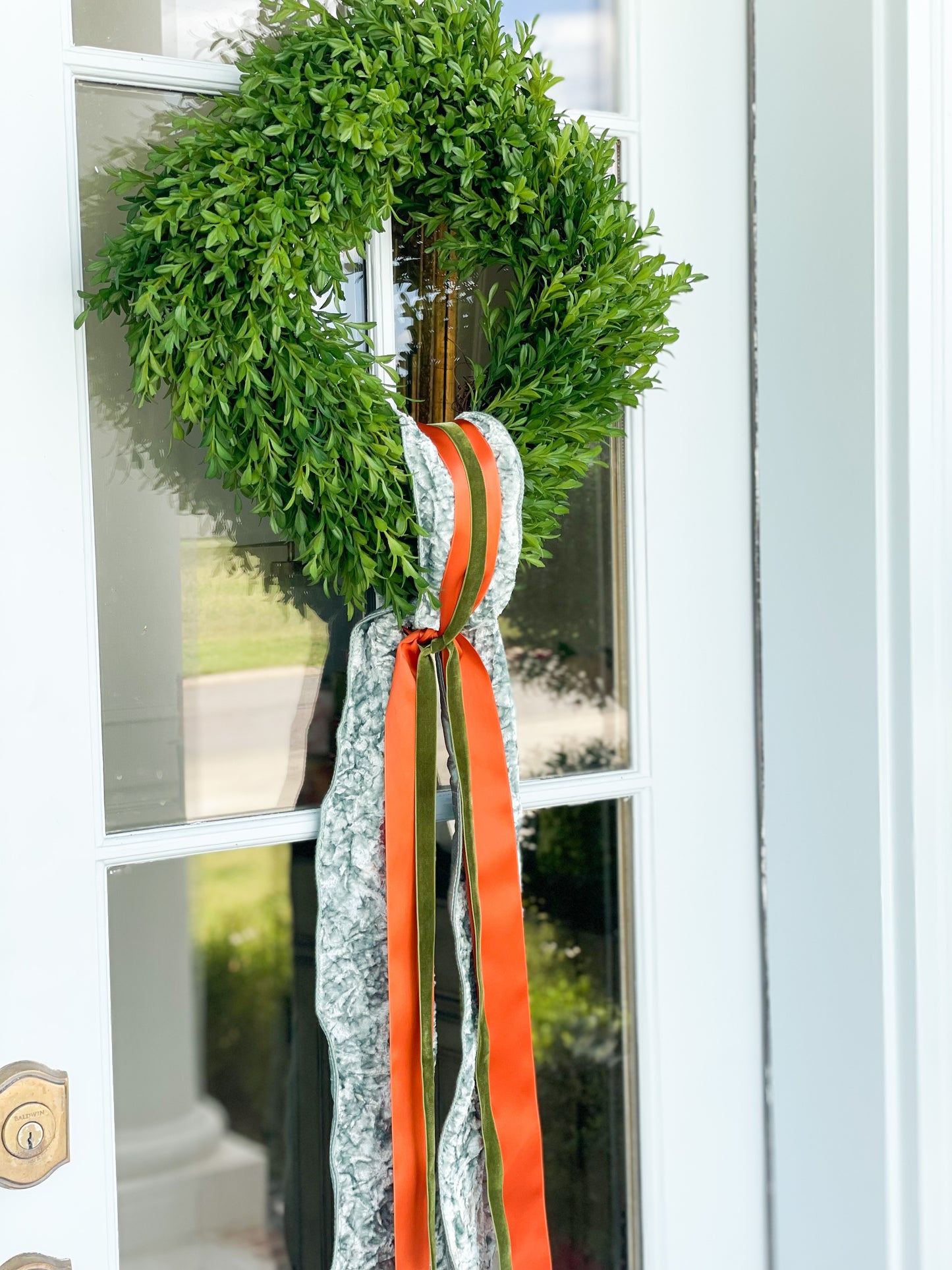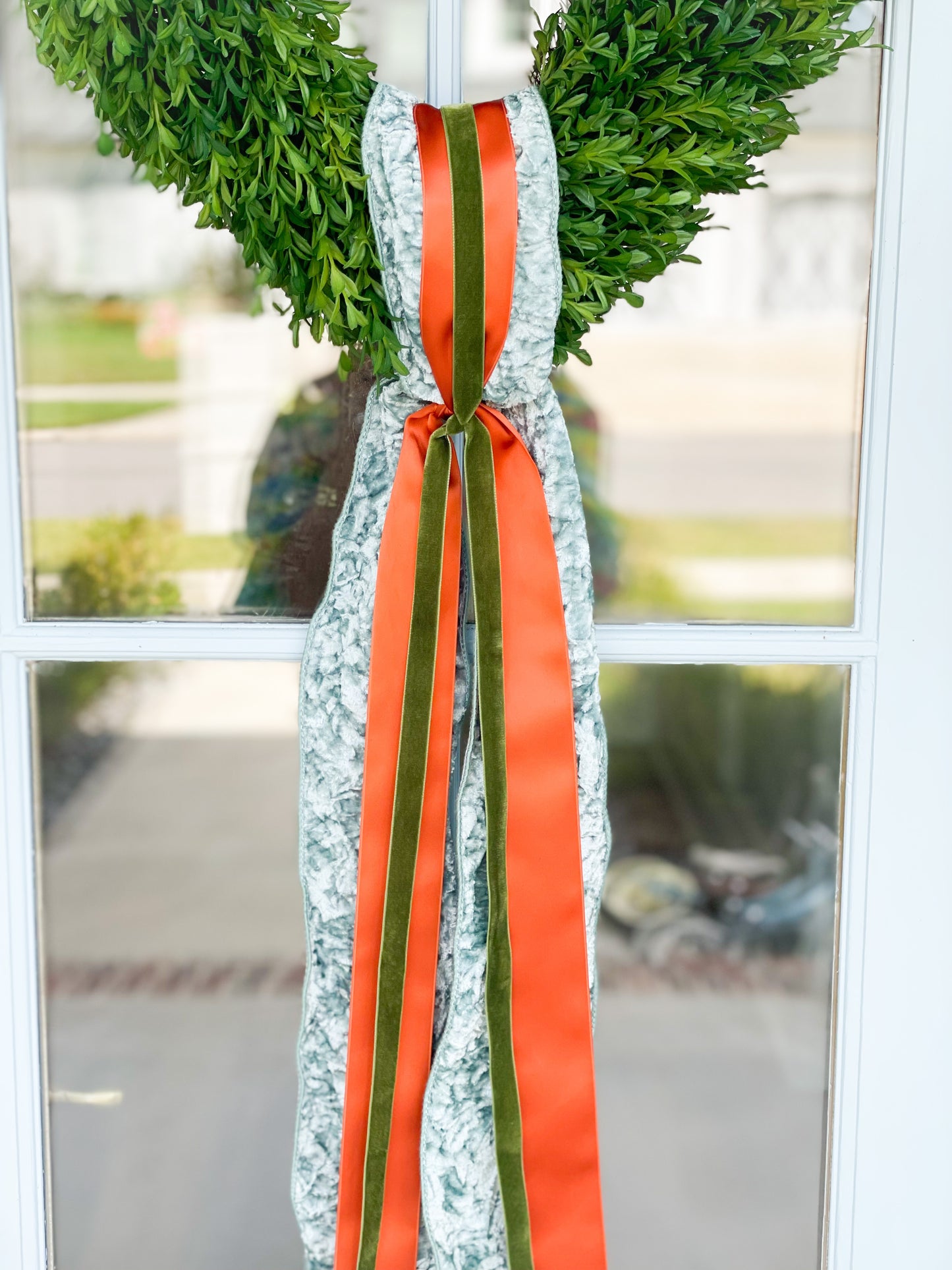 The Grateful Layered Sash In Celadon, Orange, And Green And 18” Tea Leaf Wreath