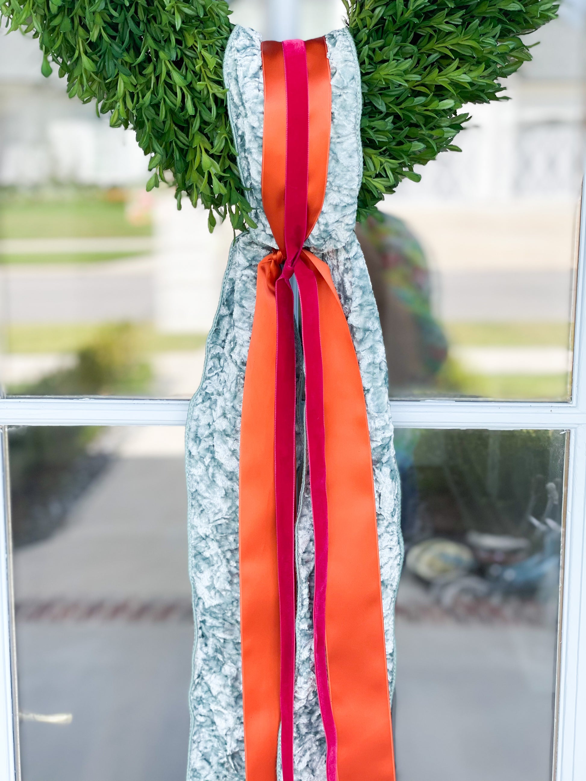 The Grateful Layered Sash In Celadon, Orange, And Fuschia And 18” Tea Leaf Wreath