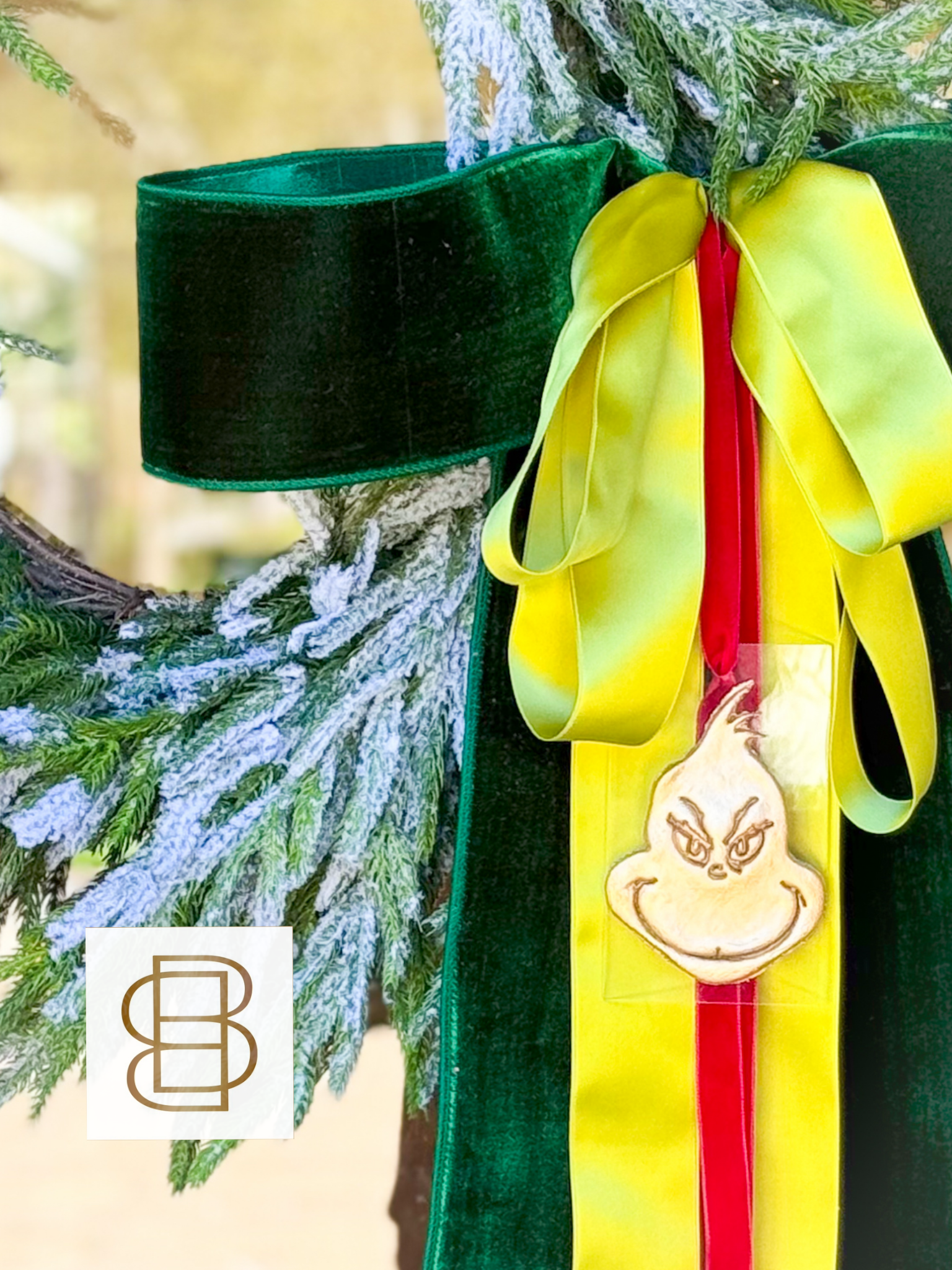 The Grinch 24” Real Touch Snowy Wreath With Layered Bow And Handmade Ornament