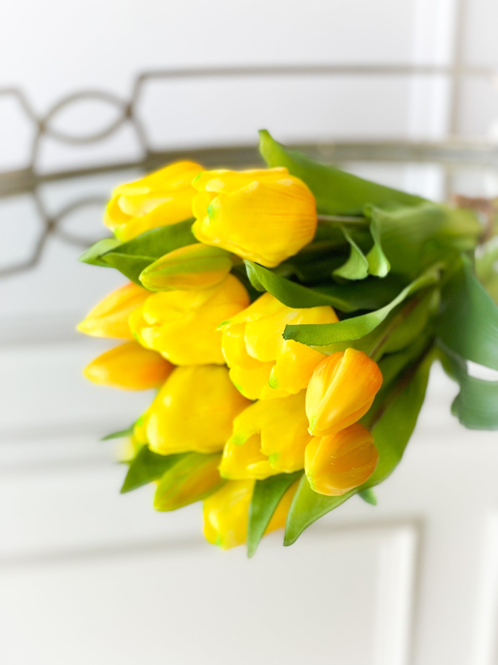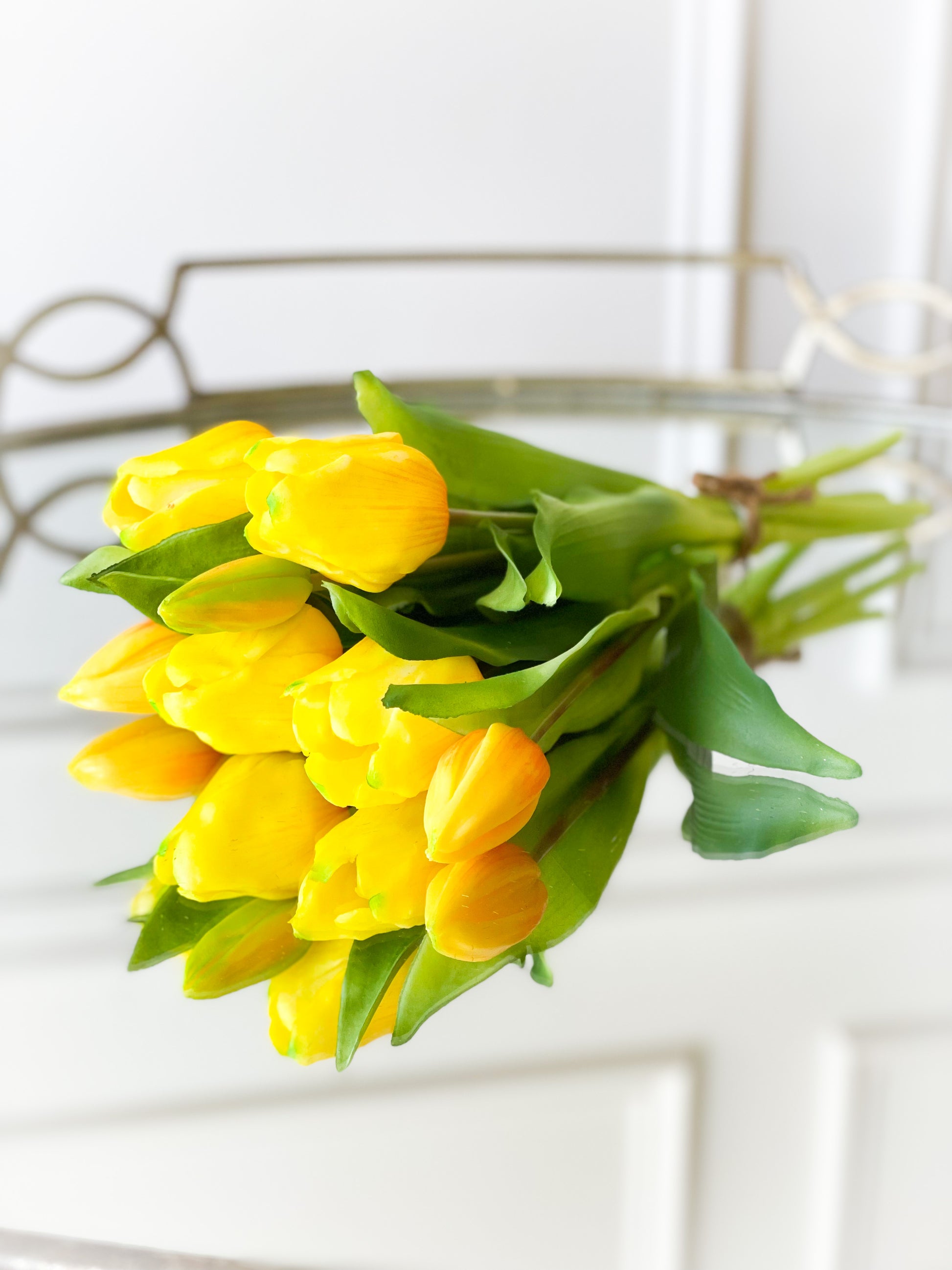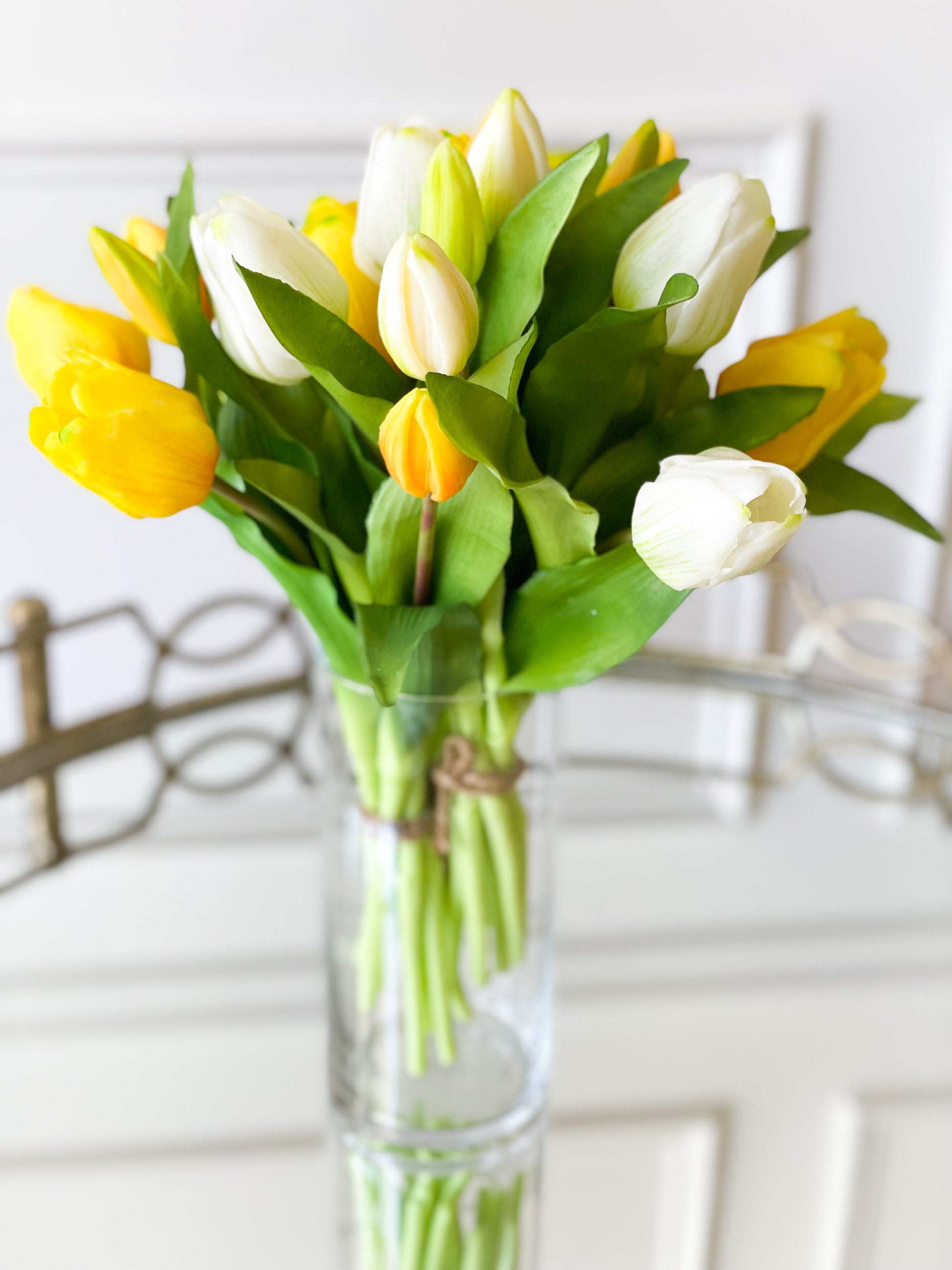 The Molly Tulip Trio Bouquet Include Two Bundles Of 11.75” Real Touch Yellow Tulips And One Bundle Of Cream Real Touch Tulips.