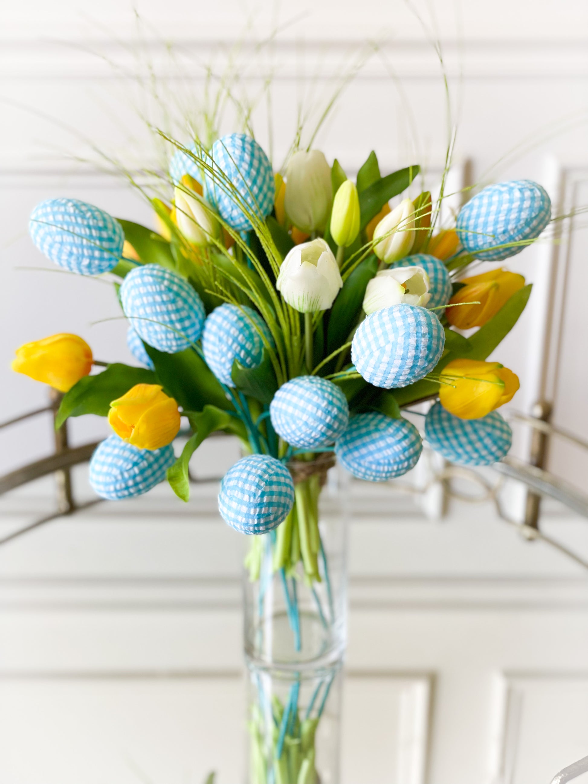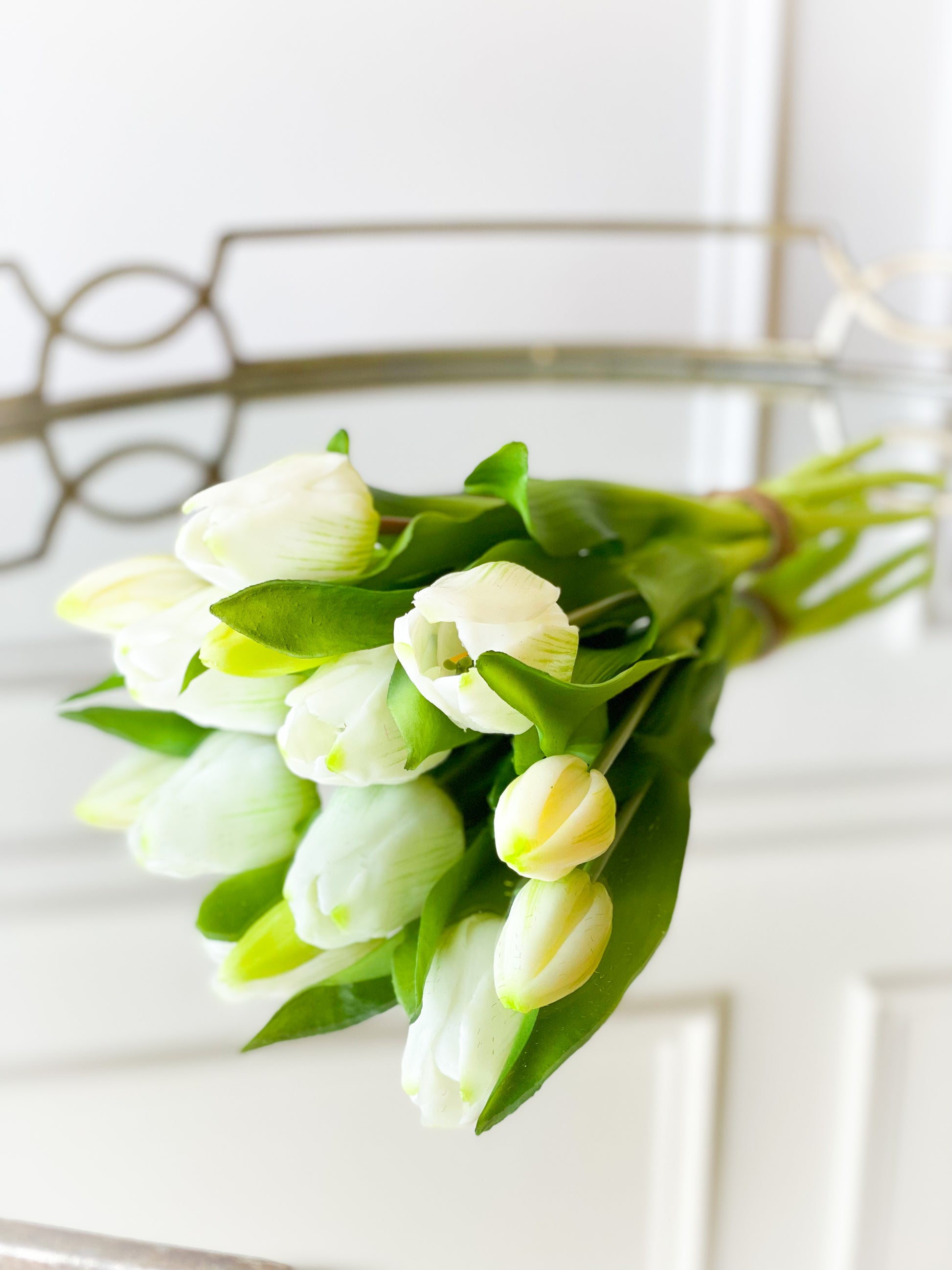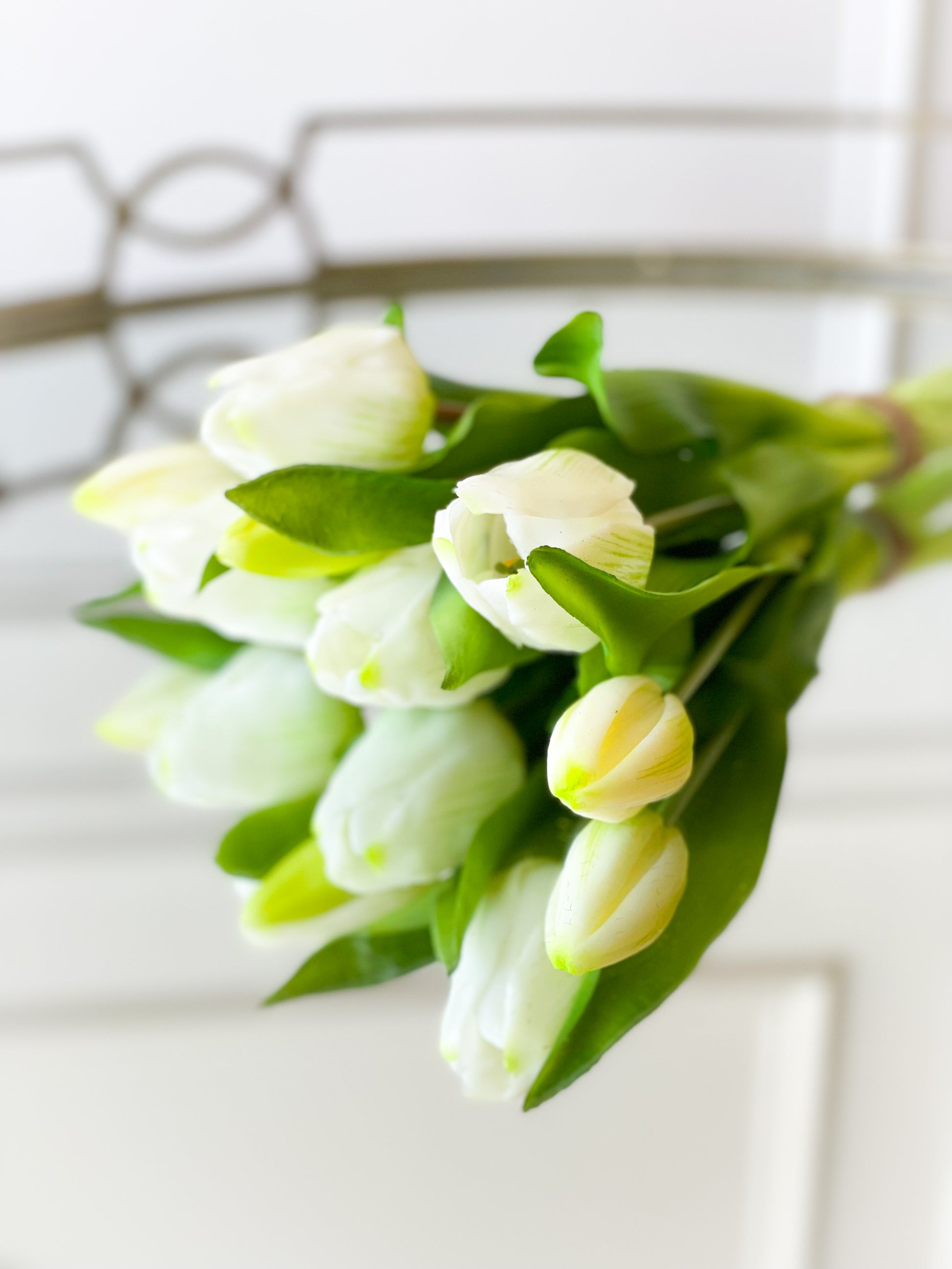 The Molly Tulip Trio Bouquet Include Two Bundles Of 11.75” Real Touch Yellow Tulips And One Bundle Of Cream Real Touch Tulips.