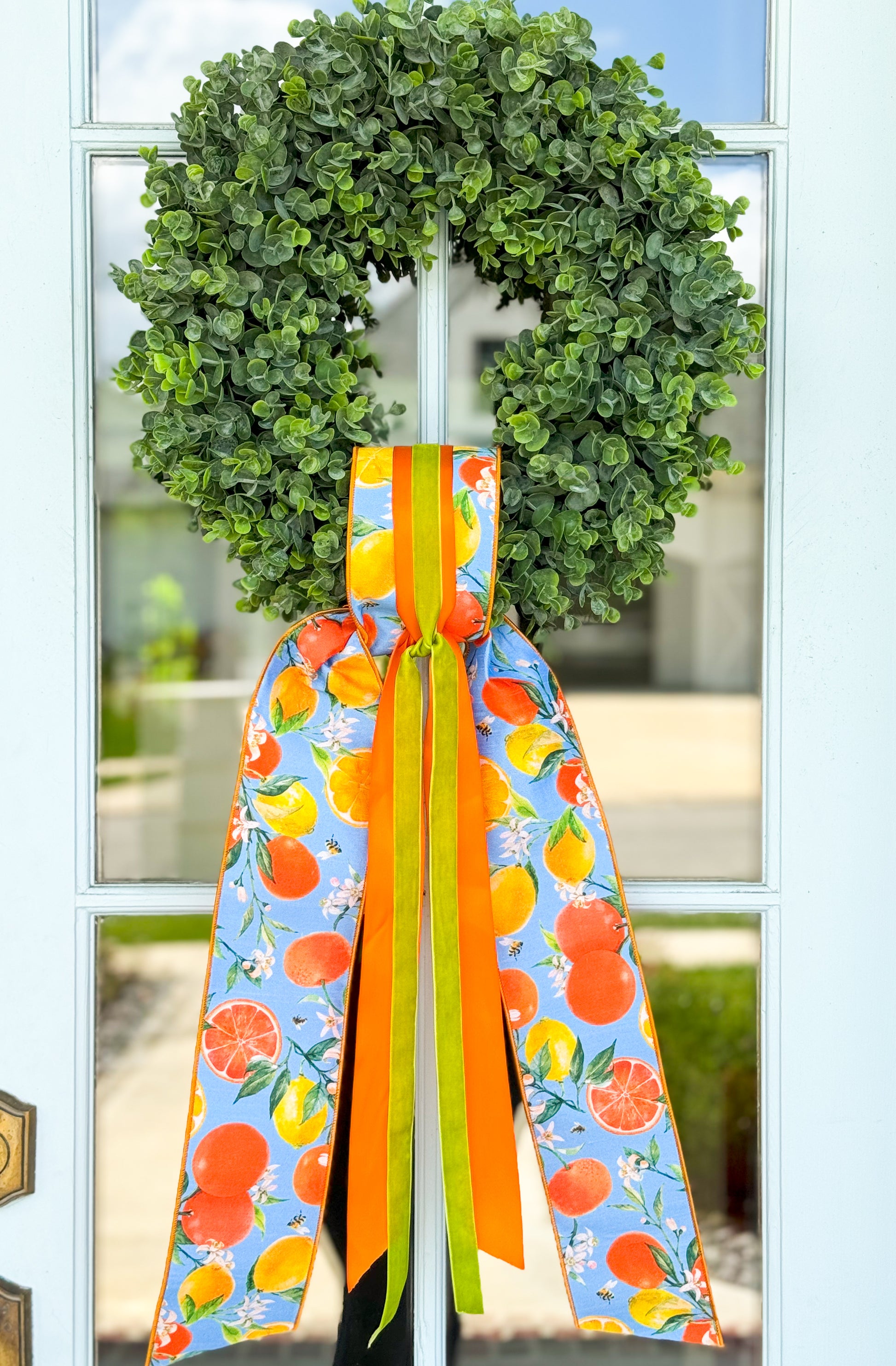 The Summer Citrus Real Touch Eucalyptus Wreath And Layered Ribbon Sash