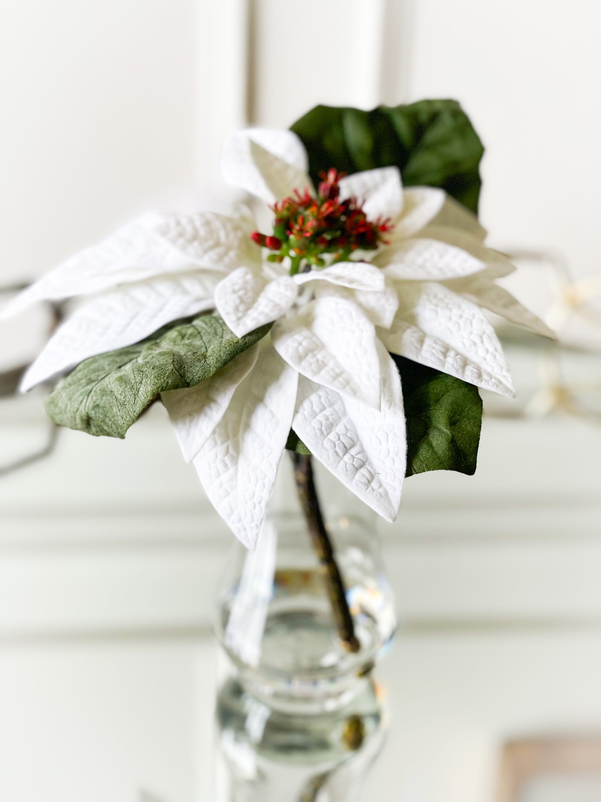 Cream Velvet Poinsettia In Glass Vase With Acrylic Water