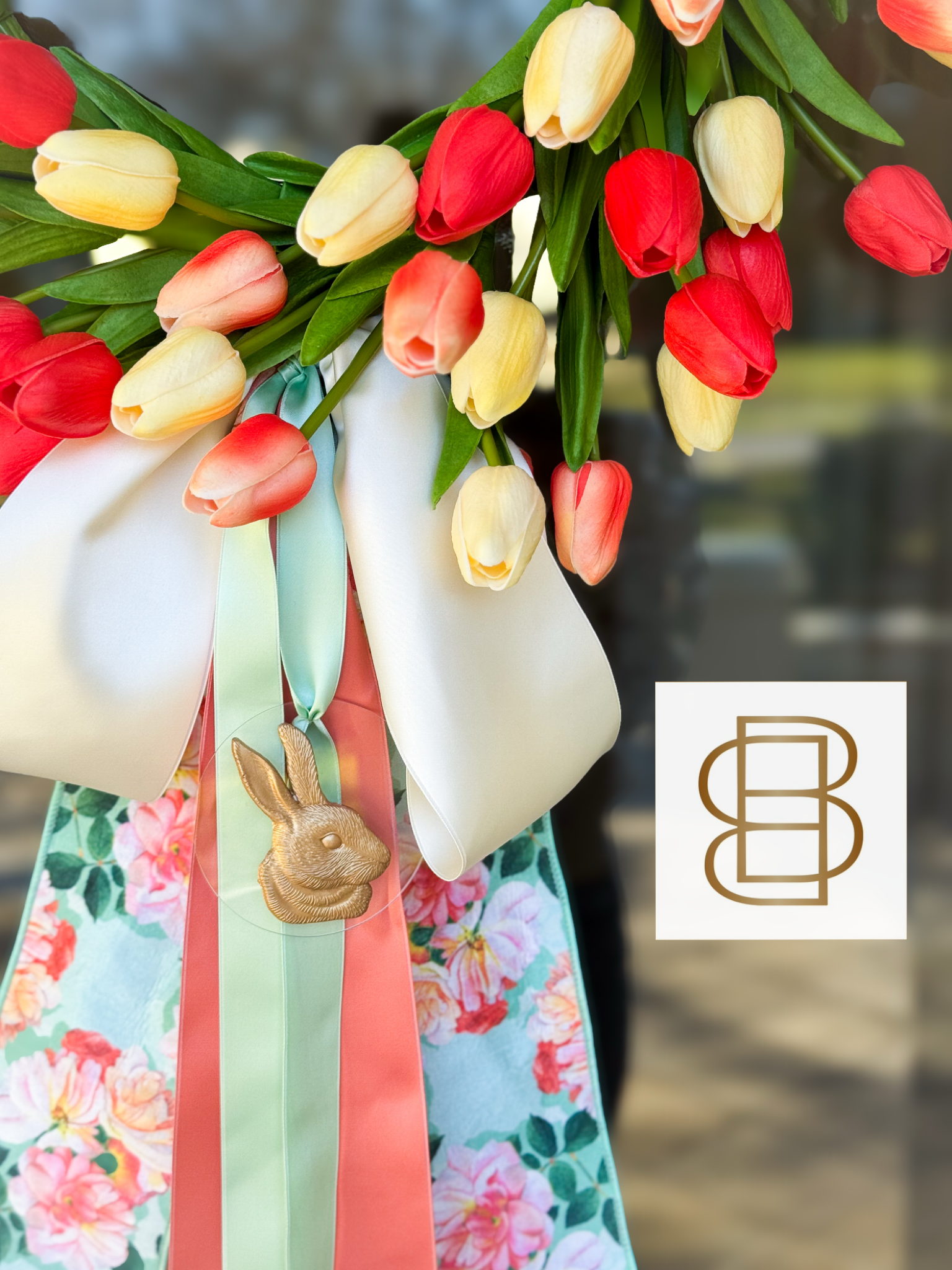 The Warm Real Touch Tulip Cottontail Wreath With A Floral Sash And Cottontail Hand poured Ornament Is A Fun Way To Brighten Up Your Front Door This Spring.