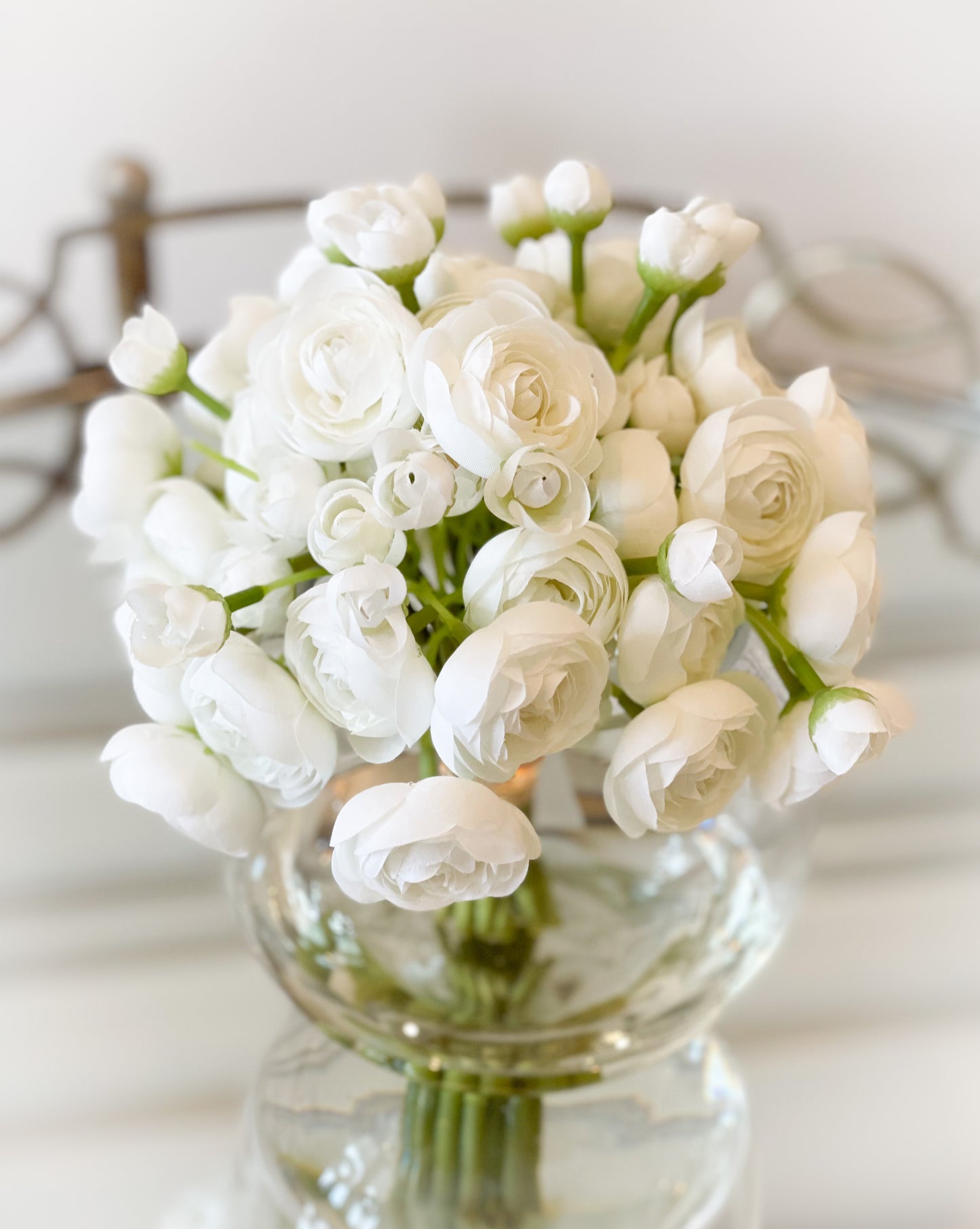 White Ranunculus Bouquet In Glass Vase With Acrylic Water