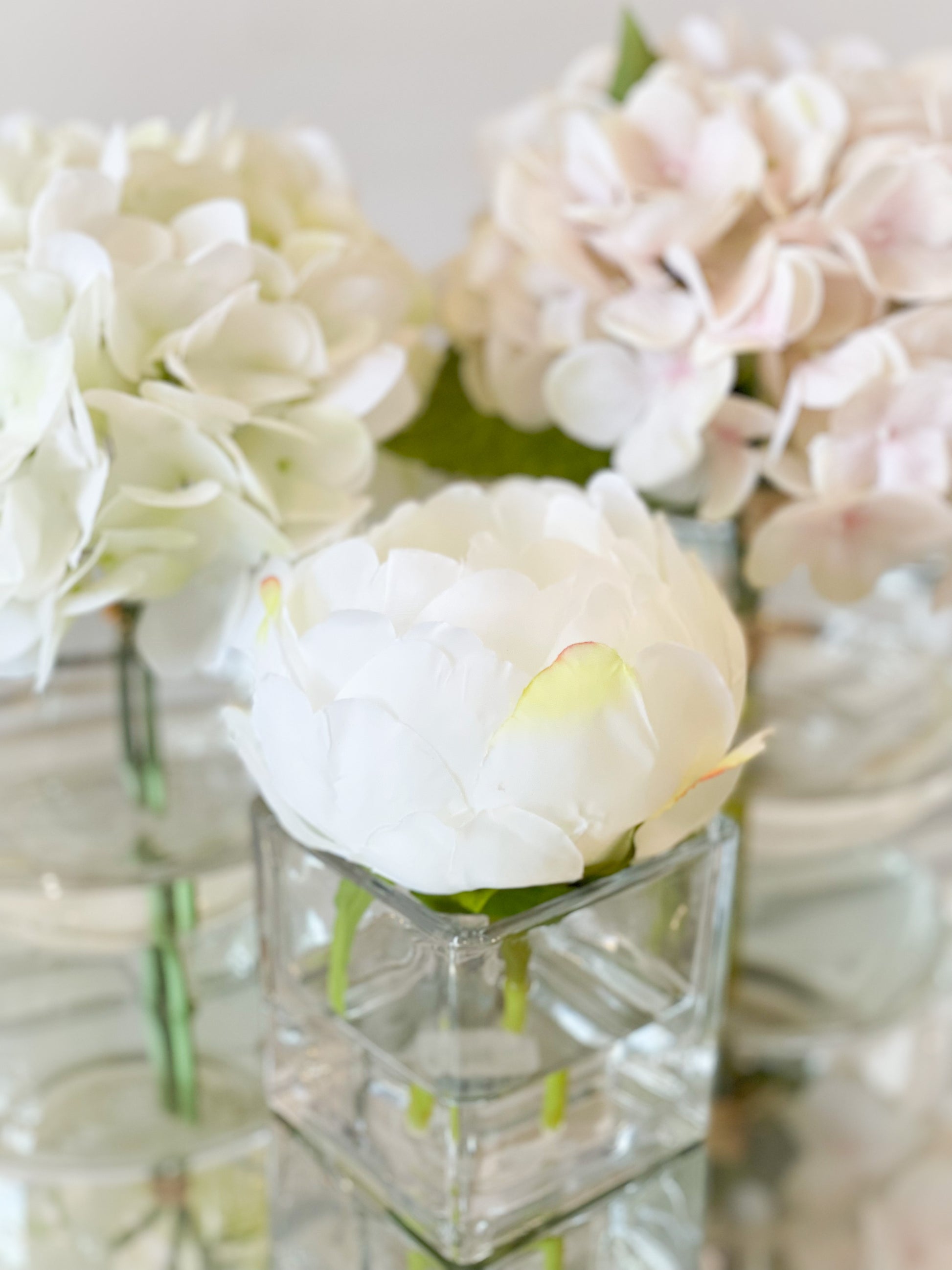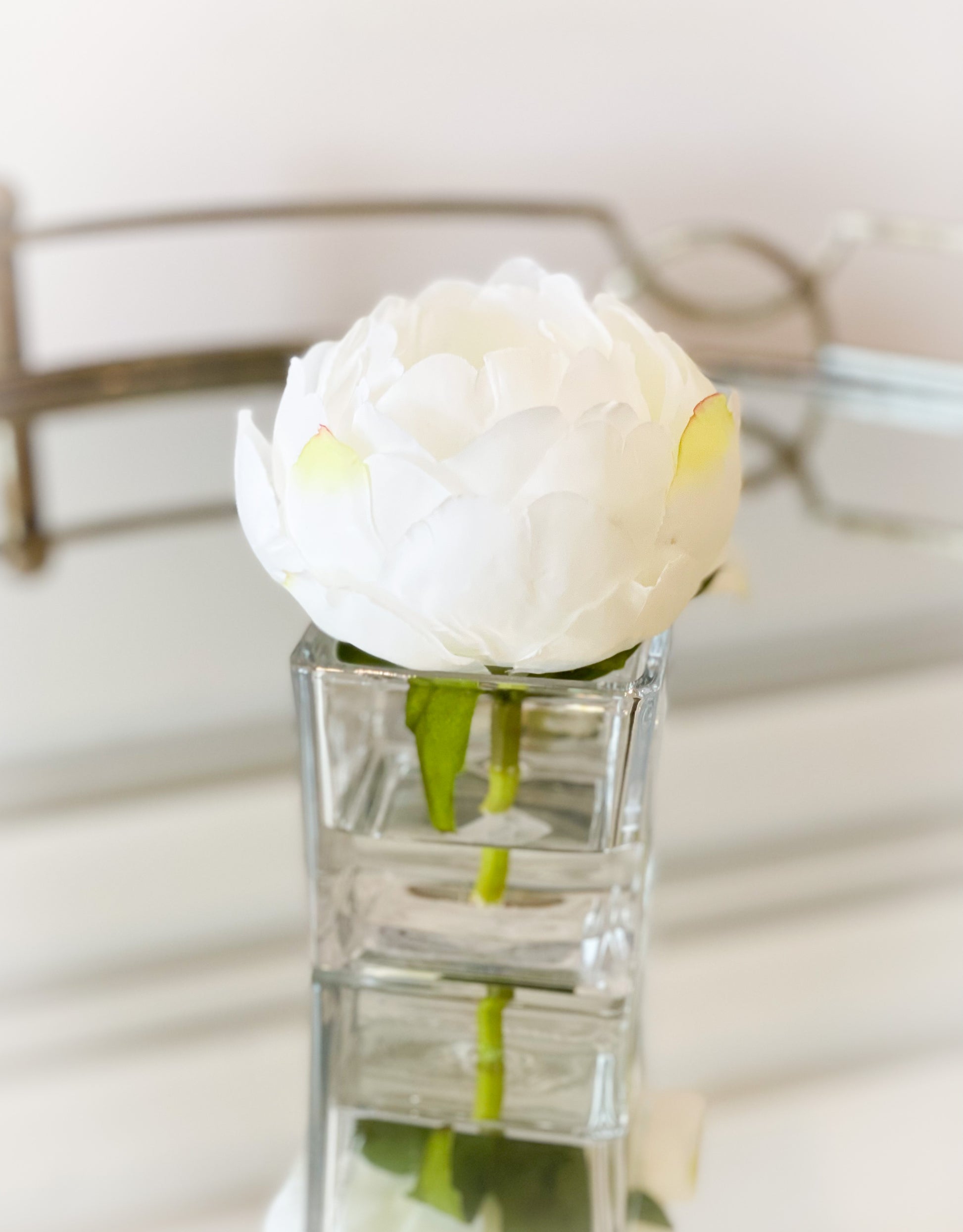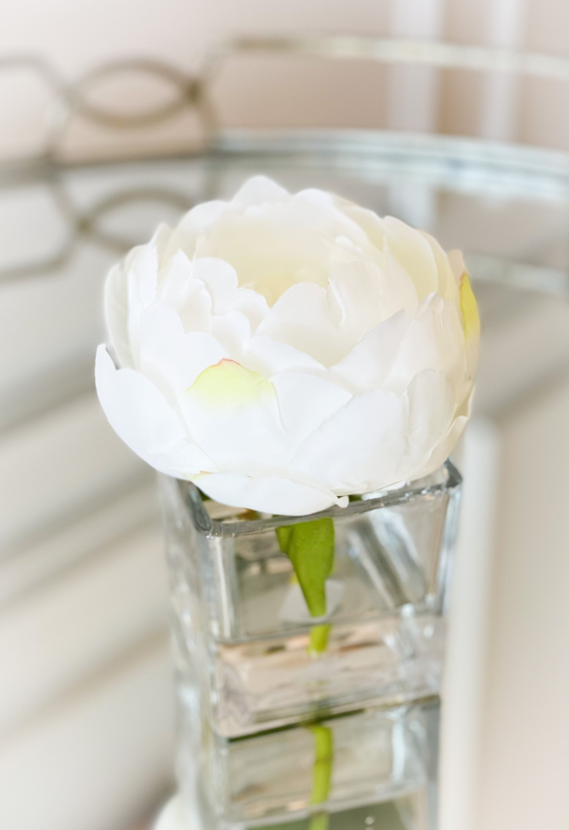 6”x4” White Single Peony In Glass Vase With Acrylic Water
