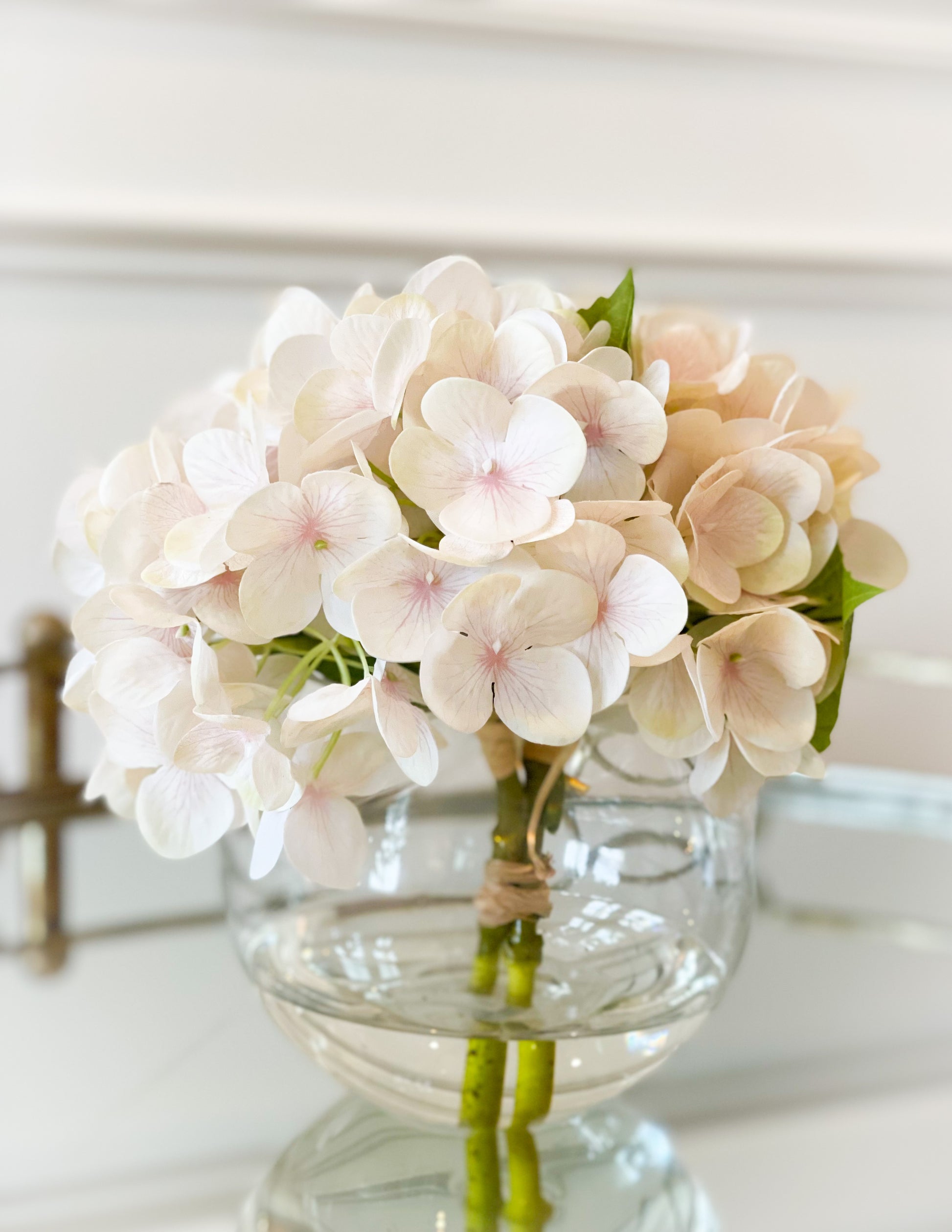 White With Lavender Hydrangeas In Glass Vase With Acrylic Water
